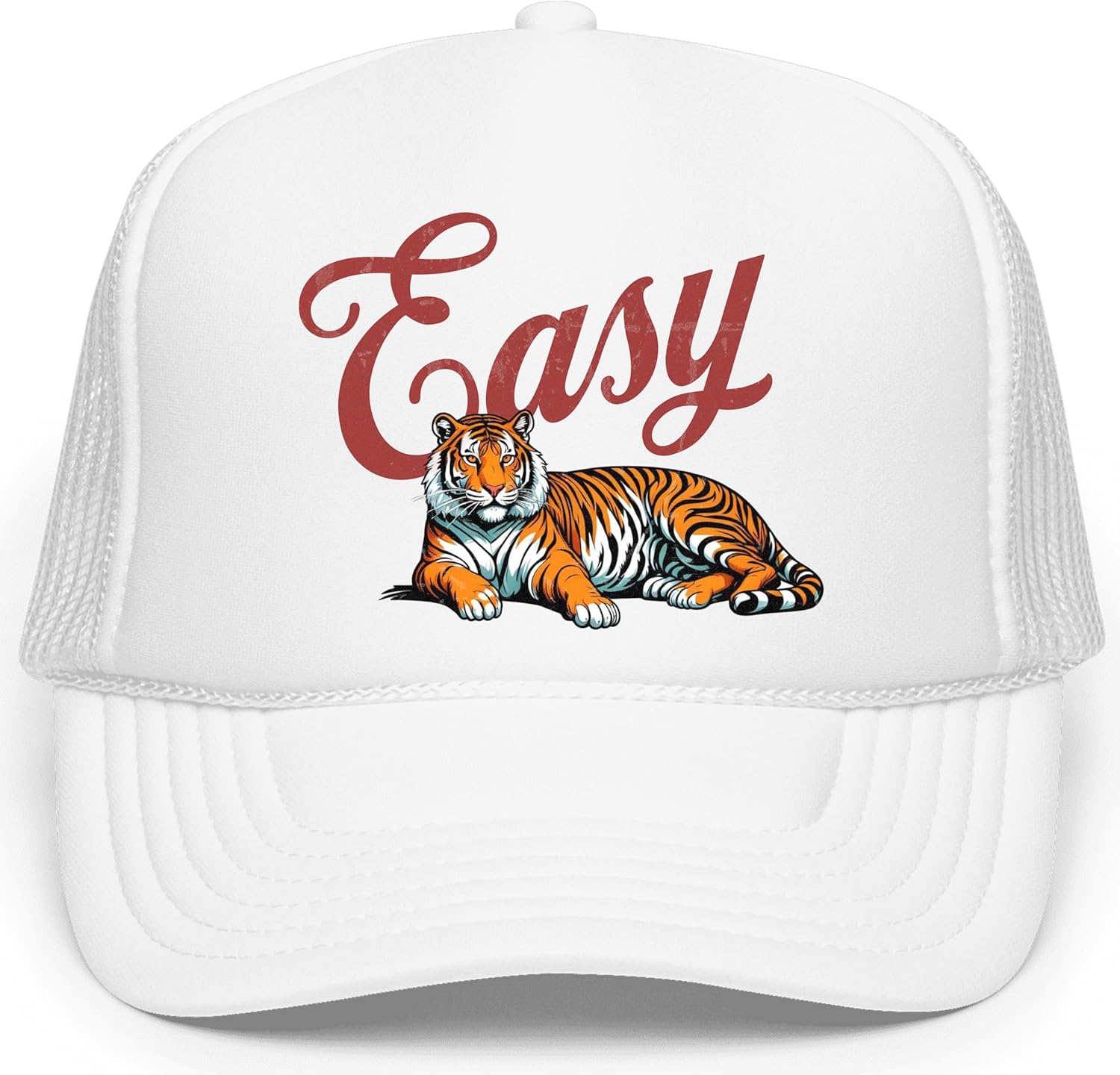 Retro Easy Tiger Trucker Hat for Men & Women Funny Quote Foam Front Classic 5 Panel Mesh Snapback