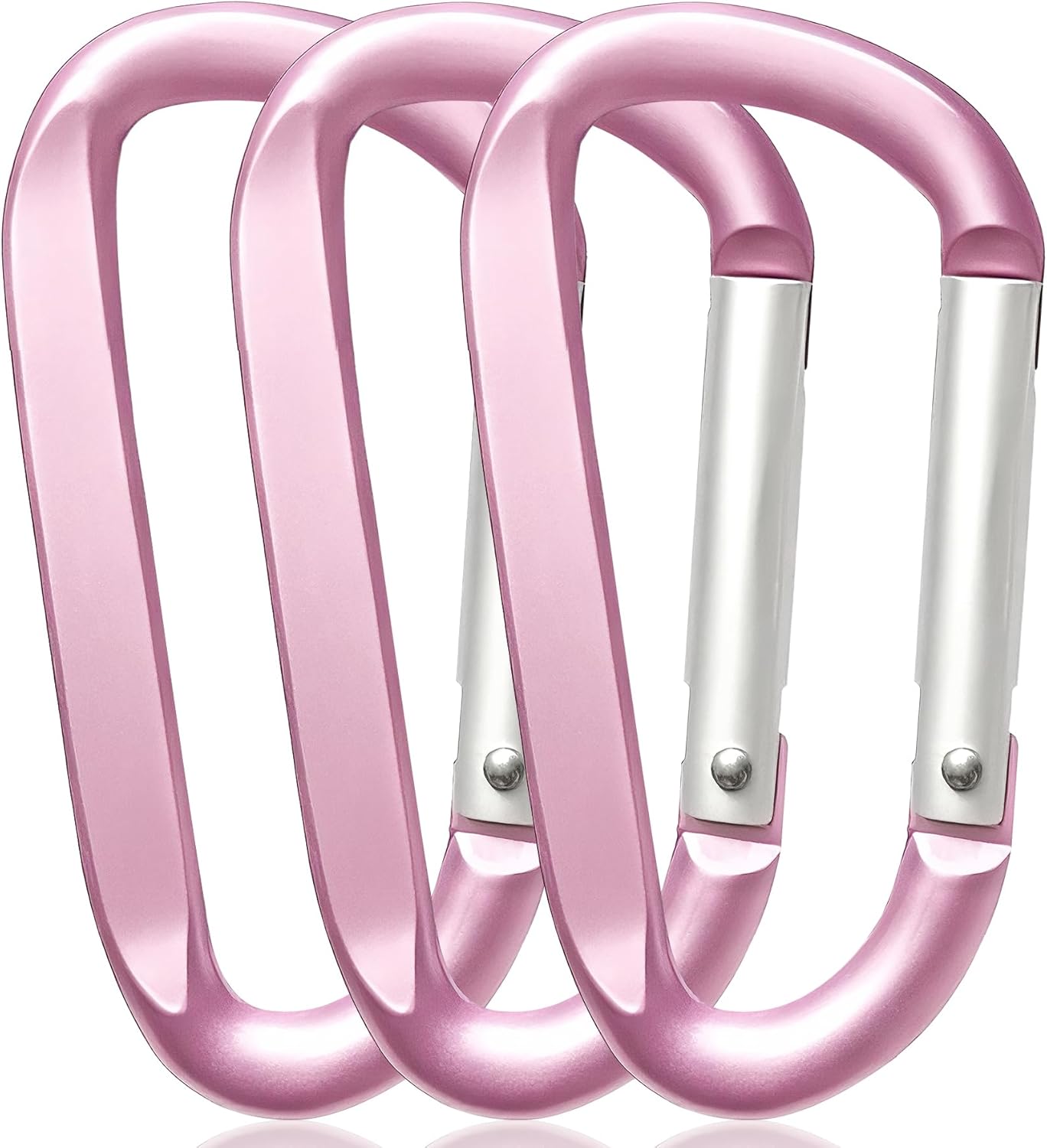 Large Carabiner Keychain Clips, 3" Pink Aluminum D Shape Hooks for Keys, Backpack, Water Bottle, Camping
