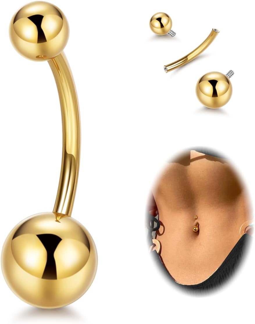 14G G23 Pure Titanium Belly Button Rings for Women Internally Threaded Curved Belly Rings Barbell Navel Rings Hypoallergenic Belly Piercing Jewelry 6-16mm
