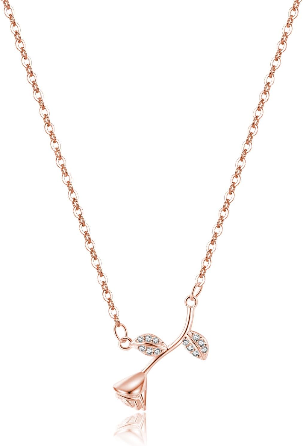 Reffeer Solid 925 Sterling Silver Rose Flower Necklace Chain for Women Teen Girls CZ Flower Pendant Necklace Choker
