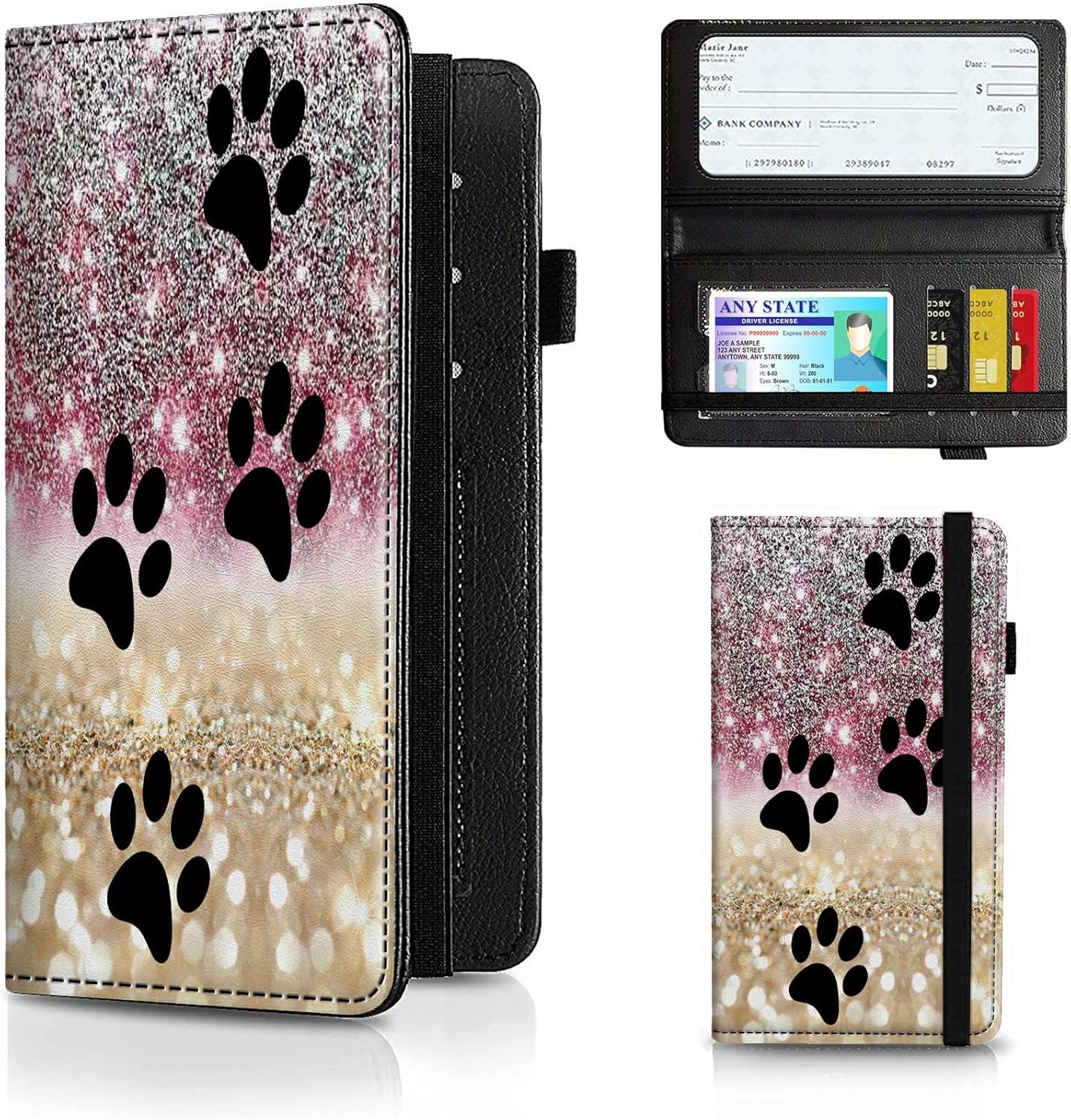 Checkbook Cover for Men and Women, Leather RFID Check Book Wallet With Credit Card Slots, Personal Duplicate Checks Holder With Pen Holder, Black Dog Paw Sparkles