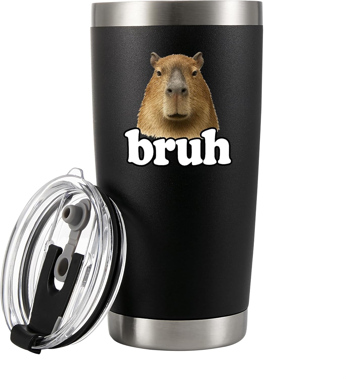 Panvola Capybara Bruh Capybara Animal Lover Gifts Pet Owner For Dad Mom Brother Sister Funny Vacuum Insulated Stainless Steel Tumbler With Removable Lid And Straw 20 oz Black