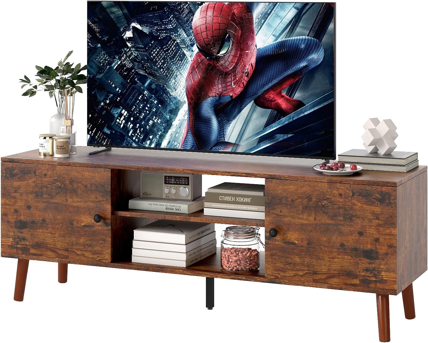 FDW TV Stand for 55 60 Inch TVs,Entertainment Center with 2 Storage Cabinets and Open Shelves, Modern Media Console Table for Living Room, Bedroom, Home Office,Brown