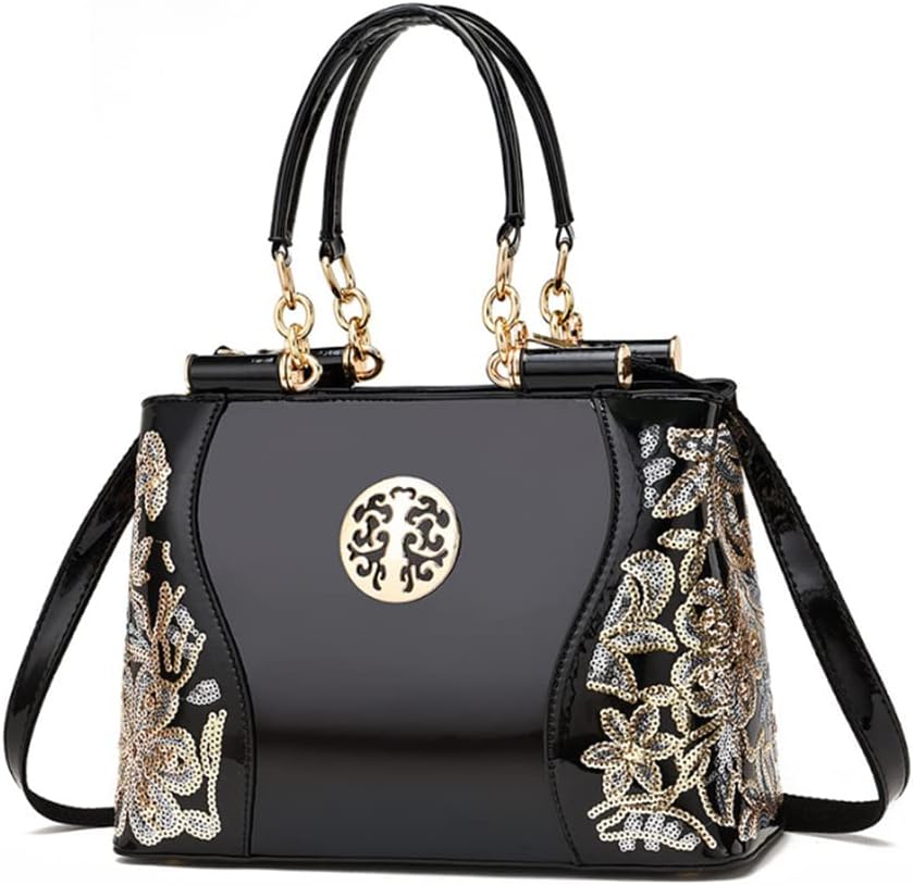 Women Synthetic Patent Bright Leather Portable Personality Tote Hobo Shoulder Crossbody Clutches Handbags