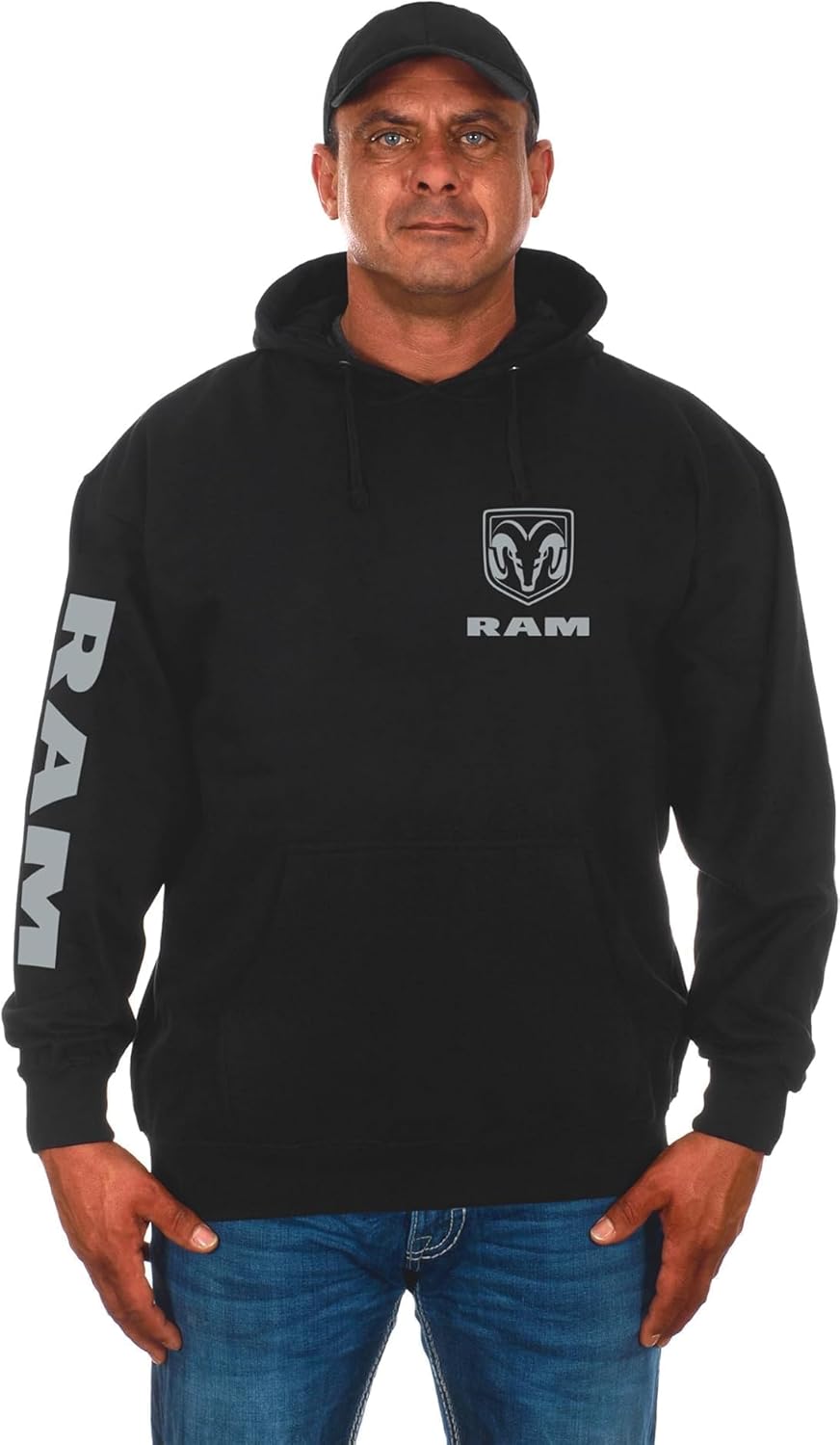 JH DESIGN GROUP Men’s Dodge Ram Classic Black Pullover Hoodie Sweatshirt
