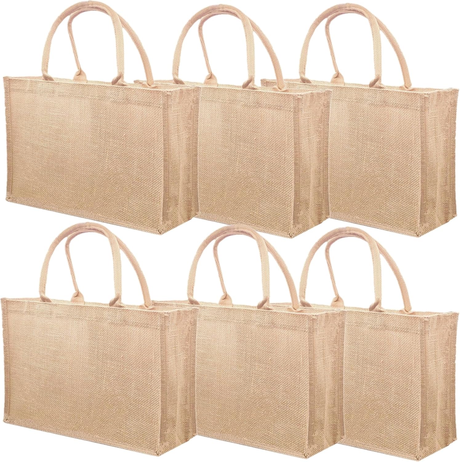 6 Pack Jute Tote Bag Reusable, Burlap Beach Bags with Sturdy Rounded Handles, Sturdy Base Gym Shopping Travel Bag for Easter Women, Mom, Teachers, Friends, Bridesmaids, 15.4''x12.2''x5.9''