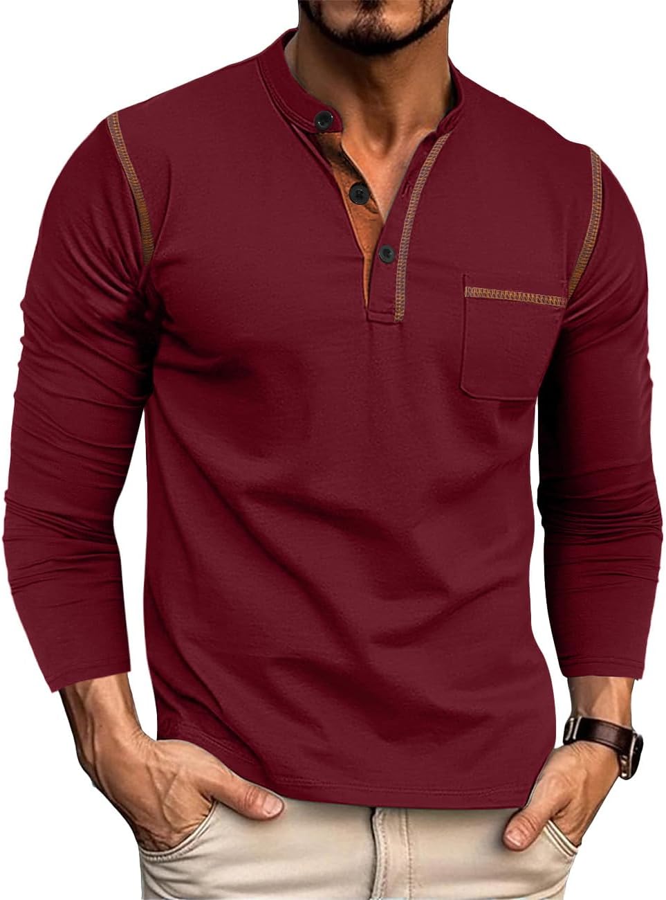 Men's Henley Shirt Long Sleeve T-Shirt Casual Top Pullover Lightweight Top Shirts with Button