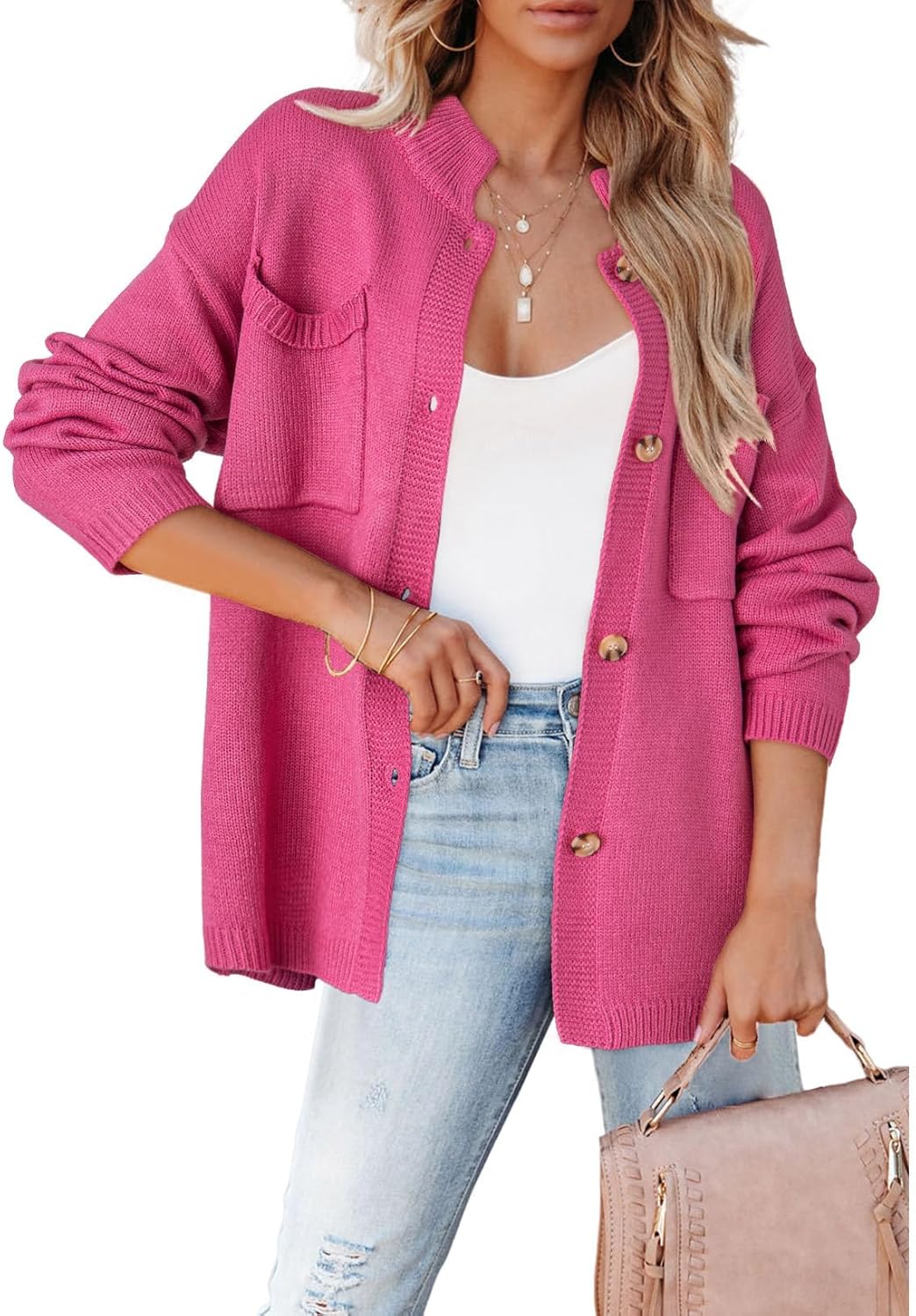 Dokotoo Cardigan Sweaters for Women Casual Open Front Long Sleeve Button Down Knit Outwear Stand Collar Fall Fashion 2024
