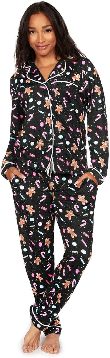 Tipsy Elves Women’s Christmas Pajamas - Classic Two Piece Lapel Pajama Set for Ladies - Cute and Cozy
