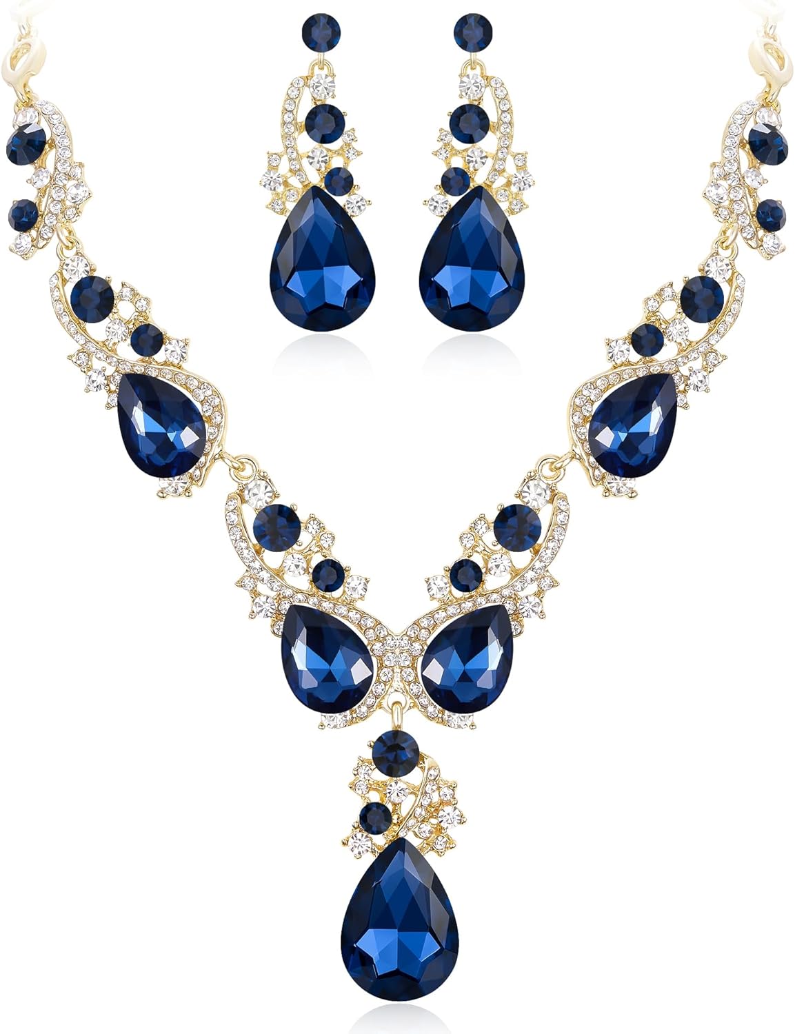 BriLove Women's Wedding Bridal Crystal Multi Teardrop Cluster Statement Necklace Dangle Earrings Set