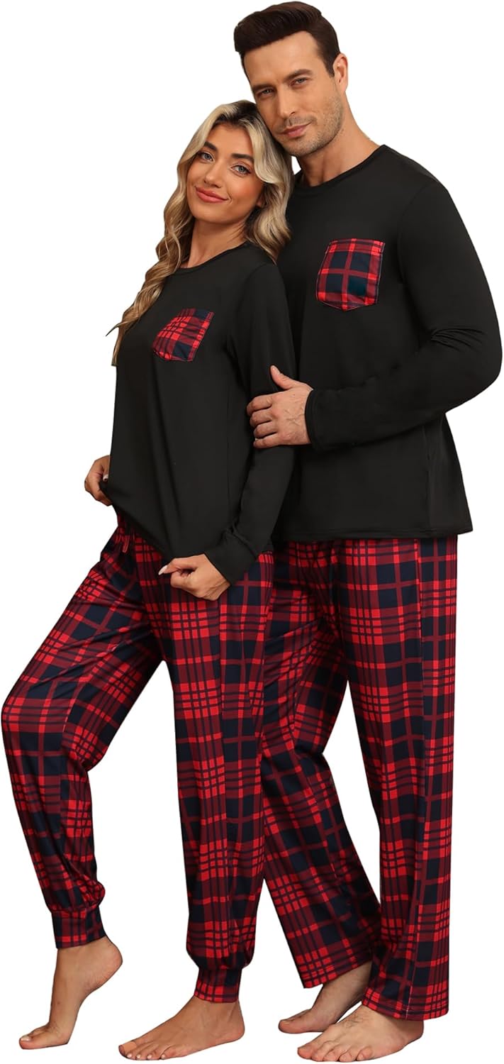 Christmas Pajamas Set Women & Men 2 Piece Buffalo Plaid Pajama Pants Fleece Tops For Couple & Family PJs Loungewear