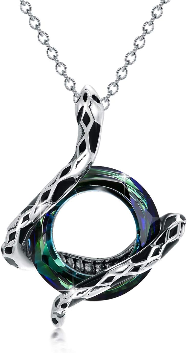 Snake Necklace 925 Sterling Silver Animal Pendant with 4 Colors Circle Crystal from Austria, Snake Jewelry Collection for Women Her