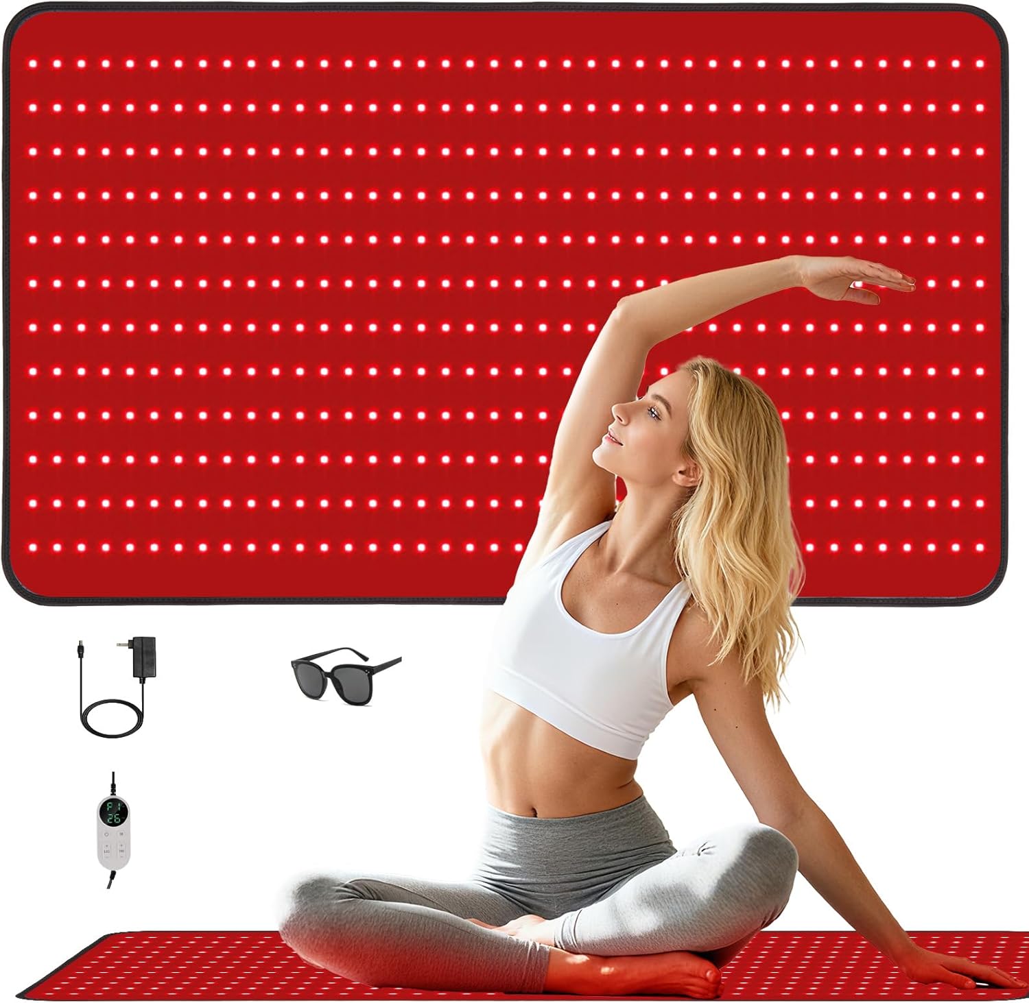 Red Light Therapy Mat for Full Body, Foldable 480LEDs Near Infrared Light Therapy Pad, 660nm& 850nm 2in1 LEDs Light Blanket for Back Belly Knee Joint Muscle, Five Adjustable Gears, 65W