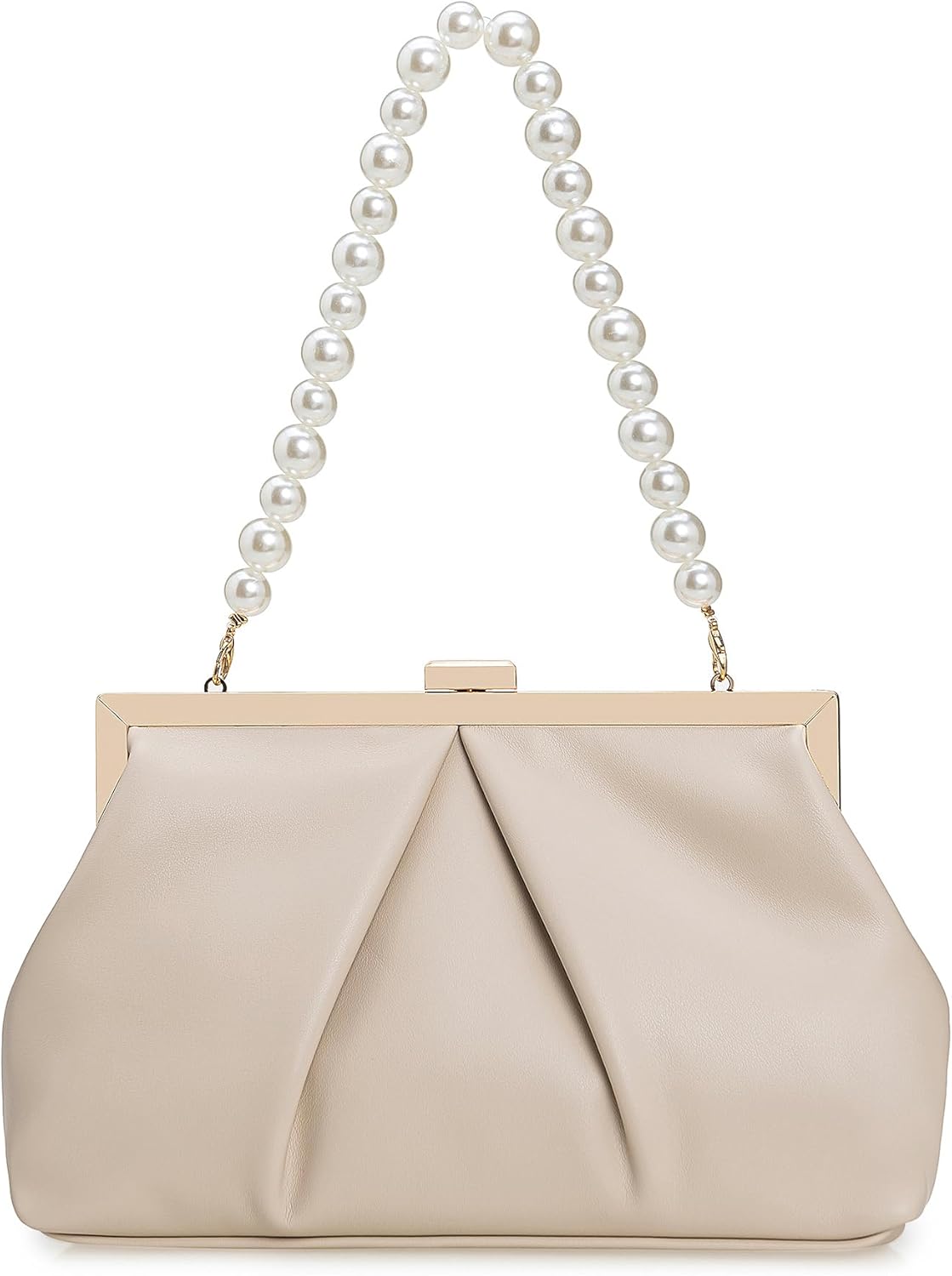 CHARMING TAILOR Faux Leather Clutch Purse Ruched PU Metal Frame Formal Evening Bag with Pearl Starp