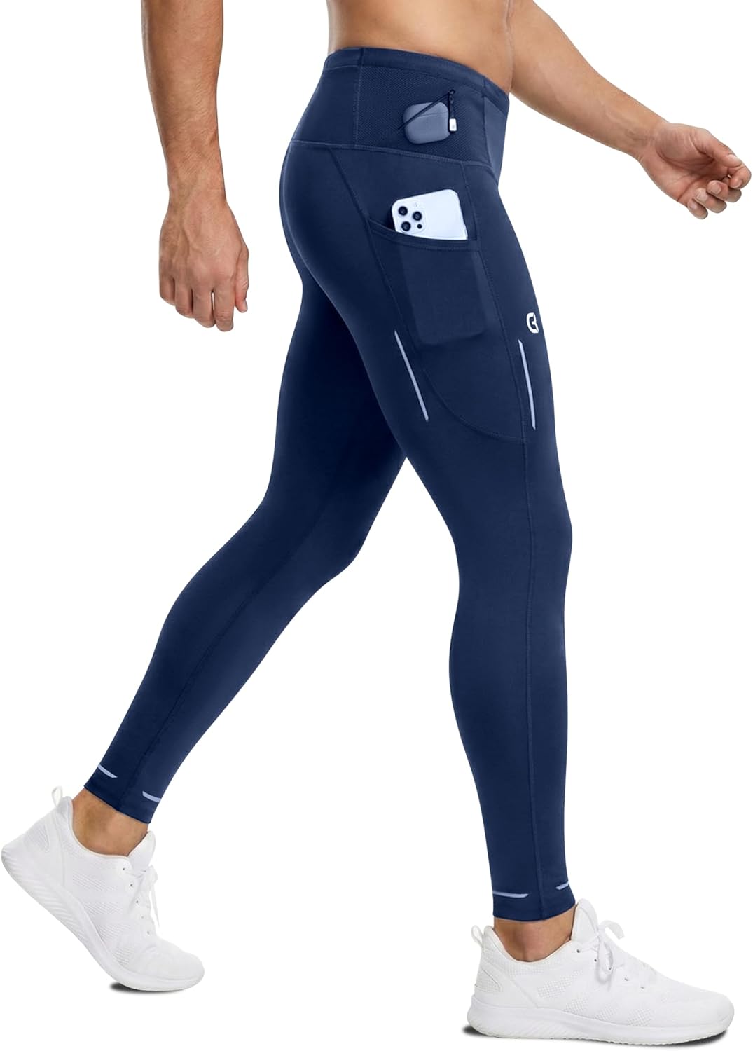 Men's Running Tights with 6 Pockets Compression Winter Running Pants for Men Reflective Thermal Leggings for Jogging