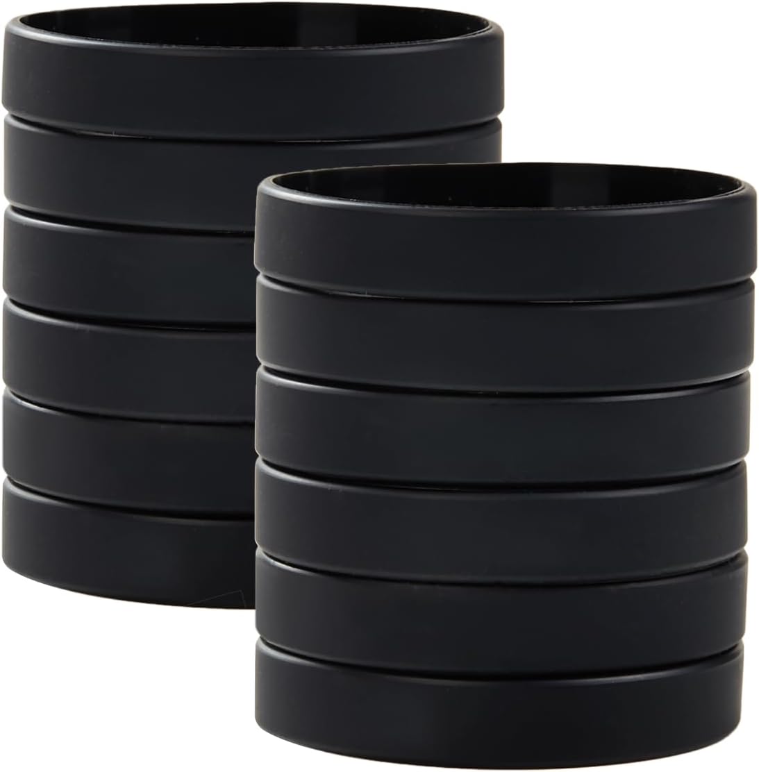 Wholesale 12pcs/pack Blank Color Silicone Rubber Wristbands Bracelets for Party Favors,Events,Sports,Funny,Classroom playing,Training,Office Use and for Teens,Men & Womens,Unlimited Office and Household Multiple Use-BLACK 8"