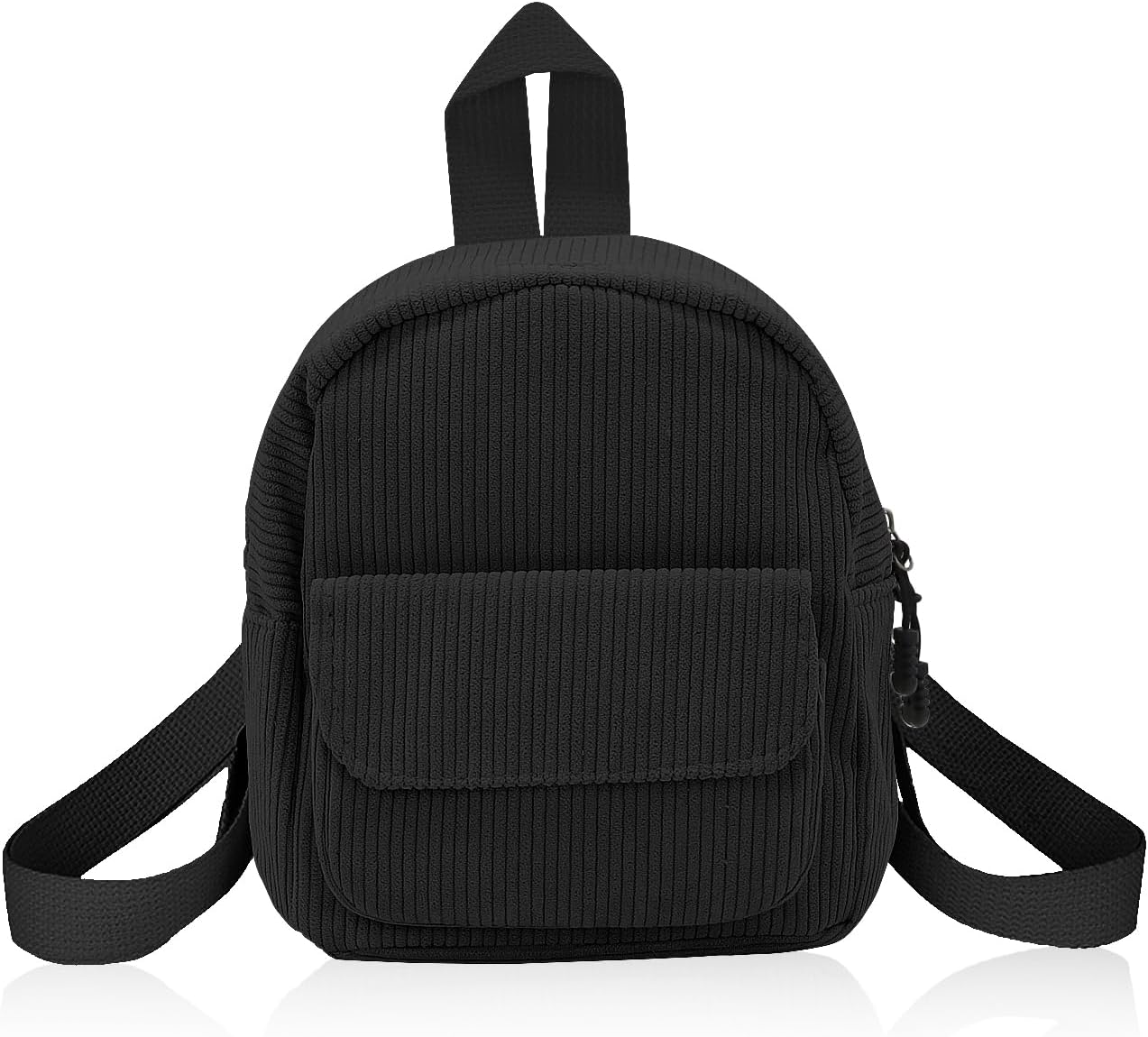 Small Backpack, Corduroy Backpack Purse for Women and Girls, Mini Backpacks for Travel, Shopping, Walking (black.)