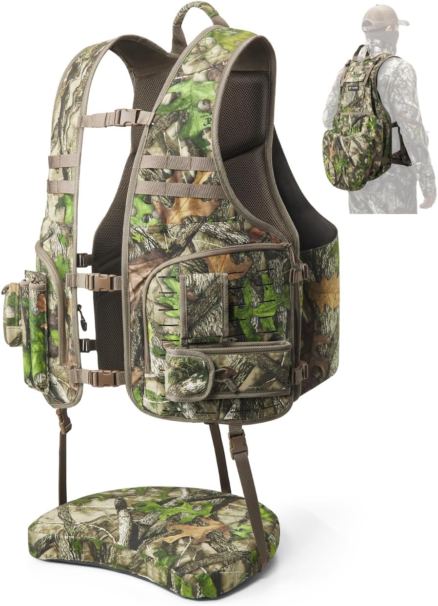 TIDEWE Turkey Vest with Seat, MOLLE System Tactical Hunting Vest with 4 Modular Add-Ons, Turkey Hunting Vest for Men & Women