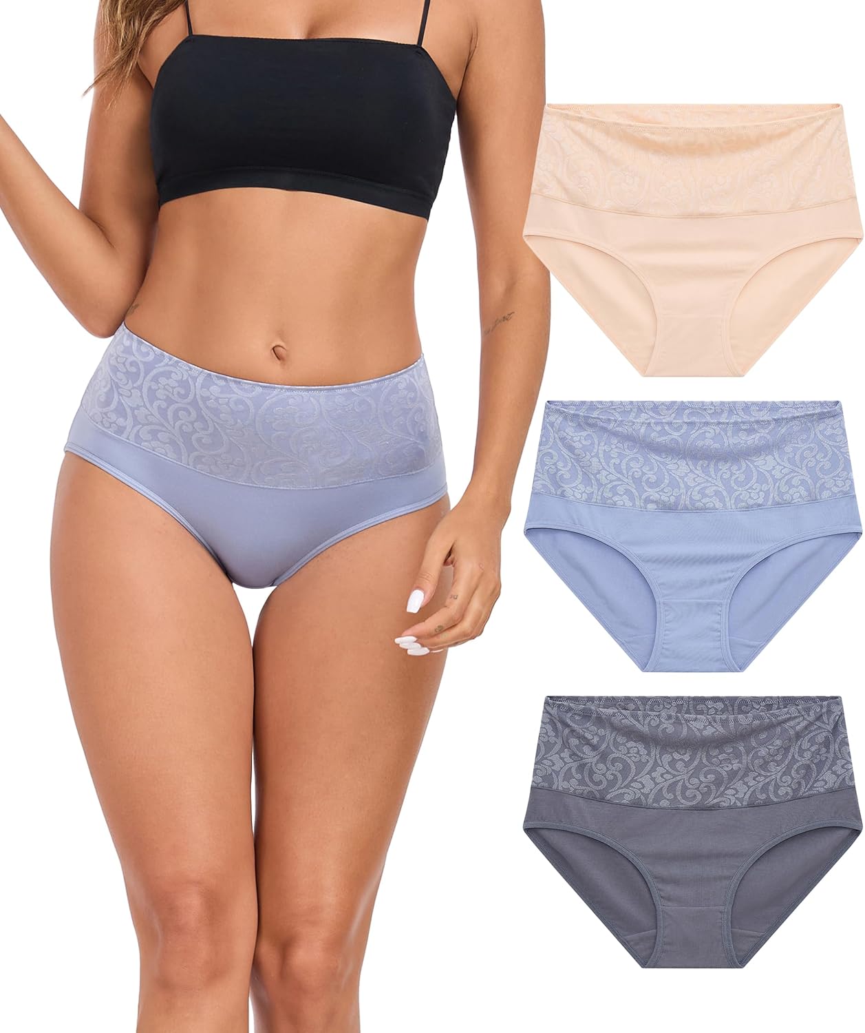 ANLIQI Womens Briefs Cotton Underwear High Waisted Tummy Control Hipster Panties Pack Full Coverage Soft Breathable Undies