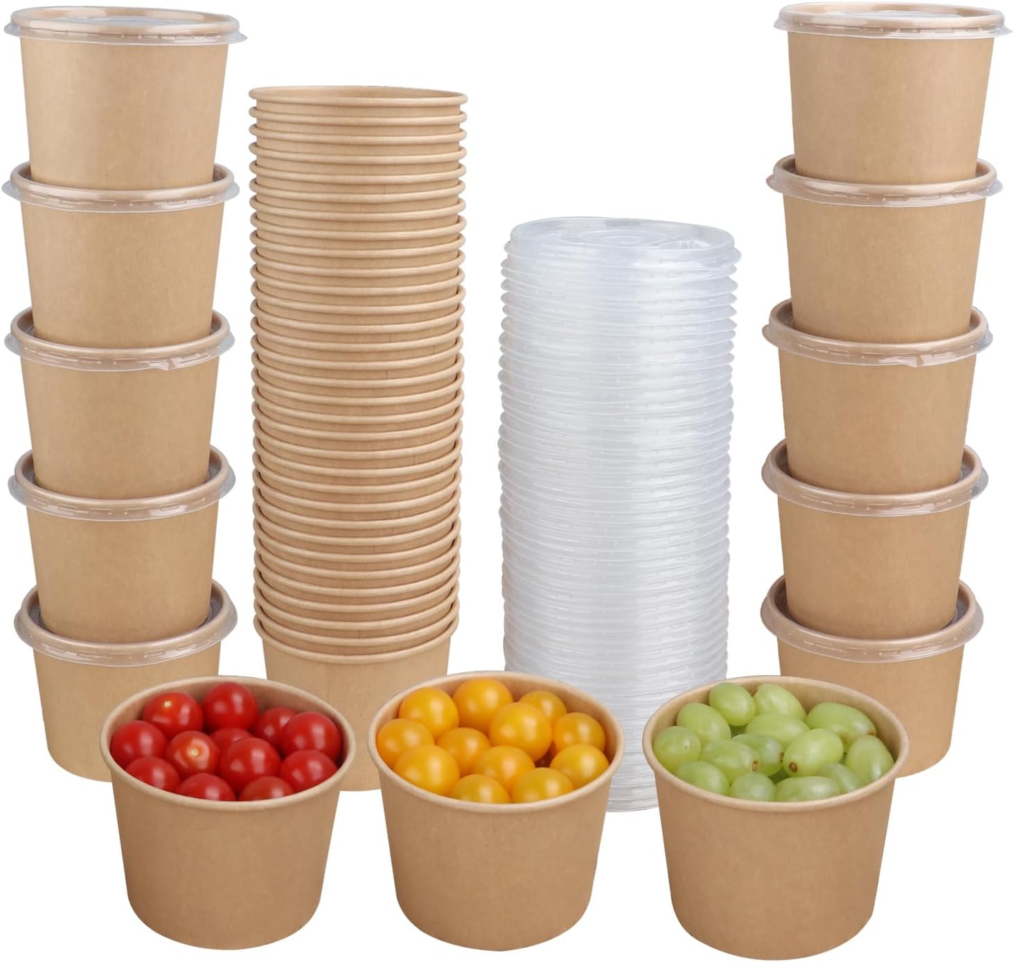 20 oz Disposable Kraft paper bowls with lids, Food containers Soup Bowls Party Supplies Treat Bowls 45 Pack