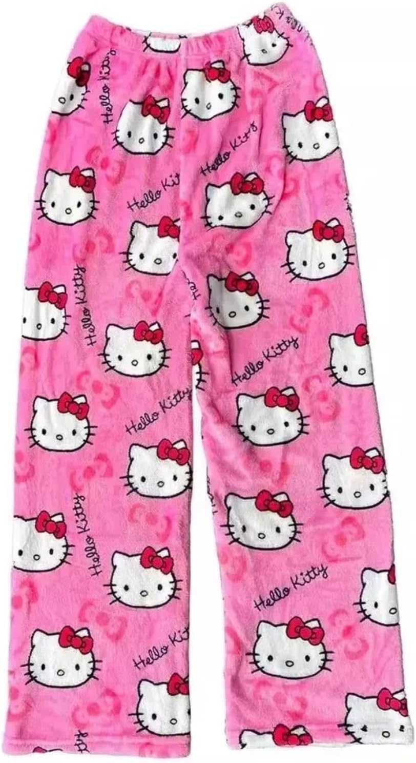 Womens Anime Pajamas Girls Cute Cartoon Cat Print Fuzzy Flannel Kawaii Couple Casual Sleep Pajama
