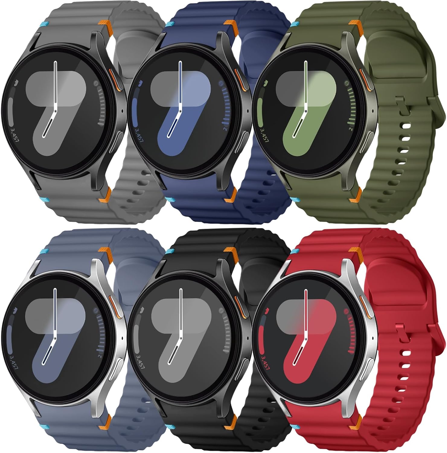 - 【Premium Soft Silicone for All-Day Comfort】 For Galaxy Watch 7 band 44mm 40mm made from breathable, flexible silicone, this band is lightweight, waterproof, sweat-resistant, and gentle on skin. The wave-shaped design contours naturally to your wrist for enhanced comfort and airflow – ideal for both workouts and everyday wear