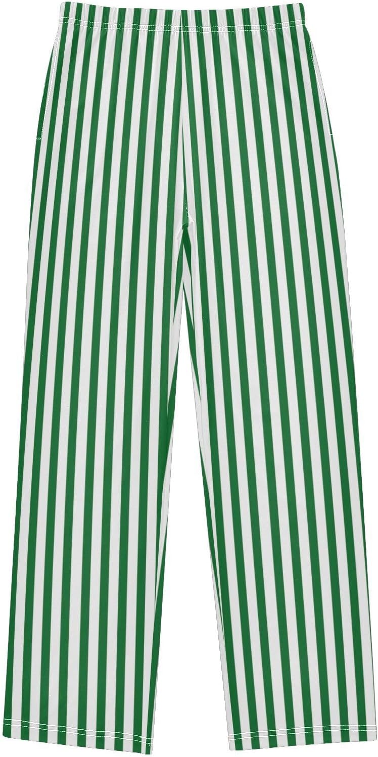 Pajama Pants 6-14 Years Elastic Waist Lounge Pajama Pants, Green White Stripes