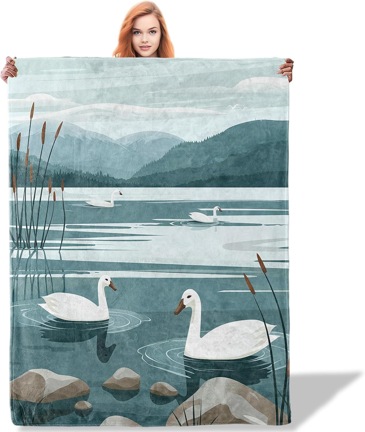 Swan Lake Flannel Throw Blanket for Kids Girls Boys, Lightweight Warm Soft Cozy, Nature Animal and Mountain Blankets, Sofa Couch Bed Living Room Home Office Decor Gifts, 50"x60"