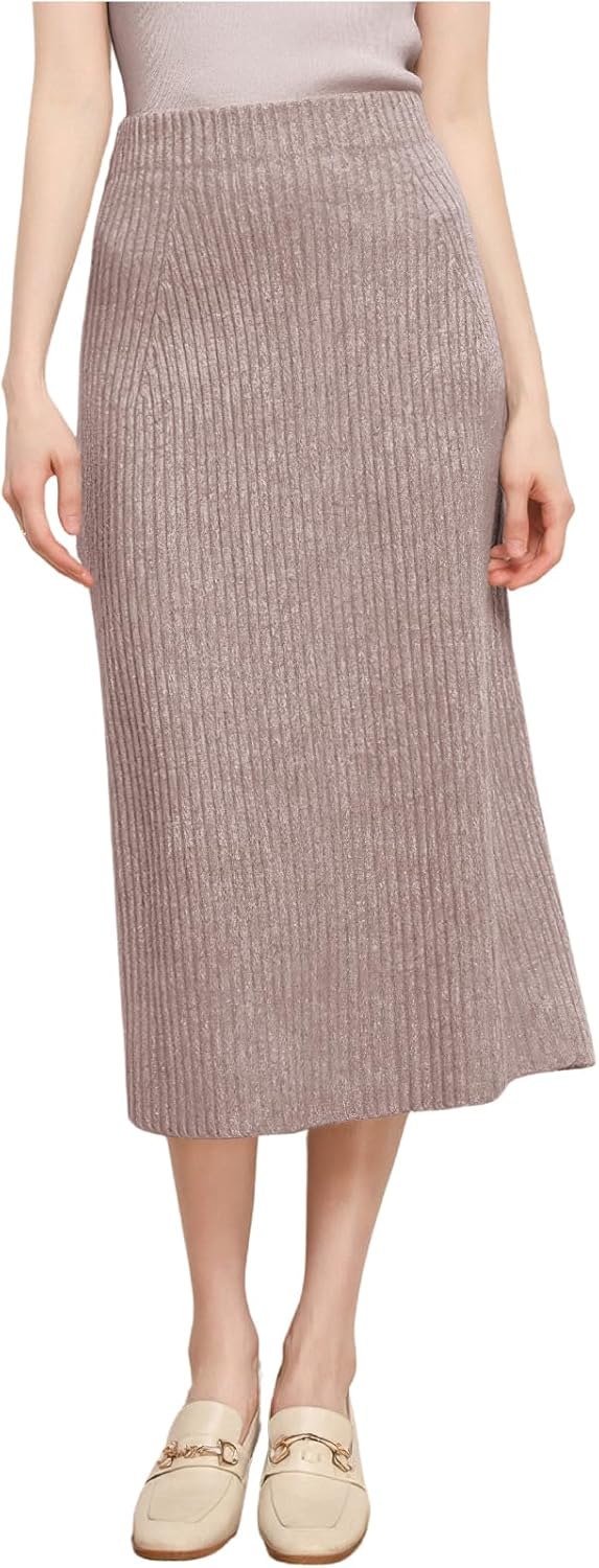 ebossy Ribbed Pencil Skirt for Women Elastic Waist Wool Blend Business Casual Knit Midi Skirt