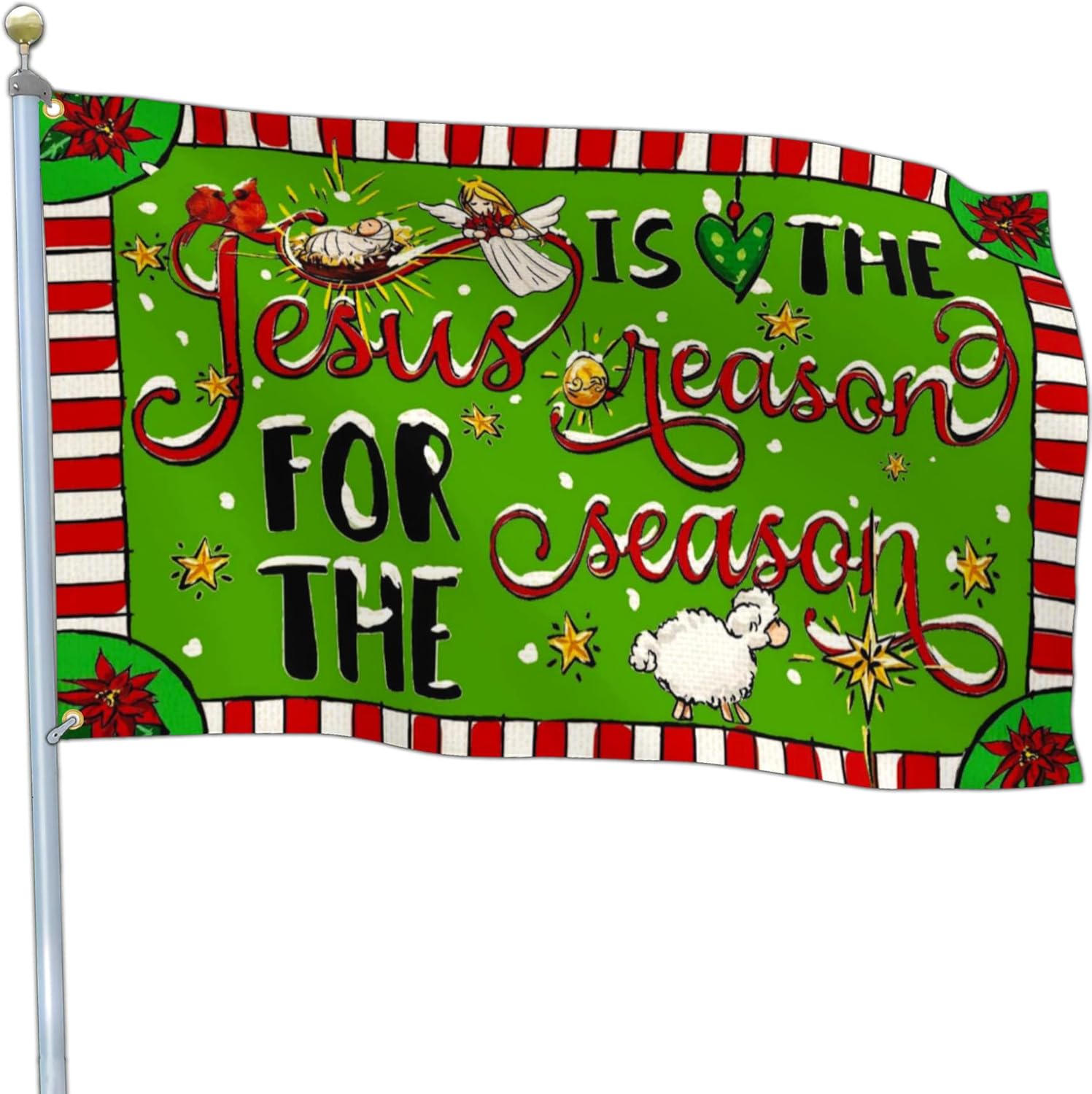 Jesus is the Reason for the Season Flag Christian Jesus Christmas Nativity Scene Yard Garden Flags for Outside 3x5 Double Sided Winter Xmas Christmas Vacation Outdoor Decorations