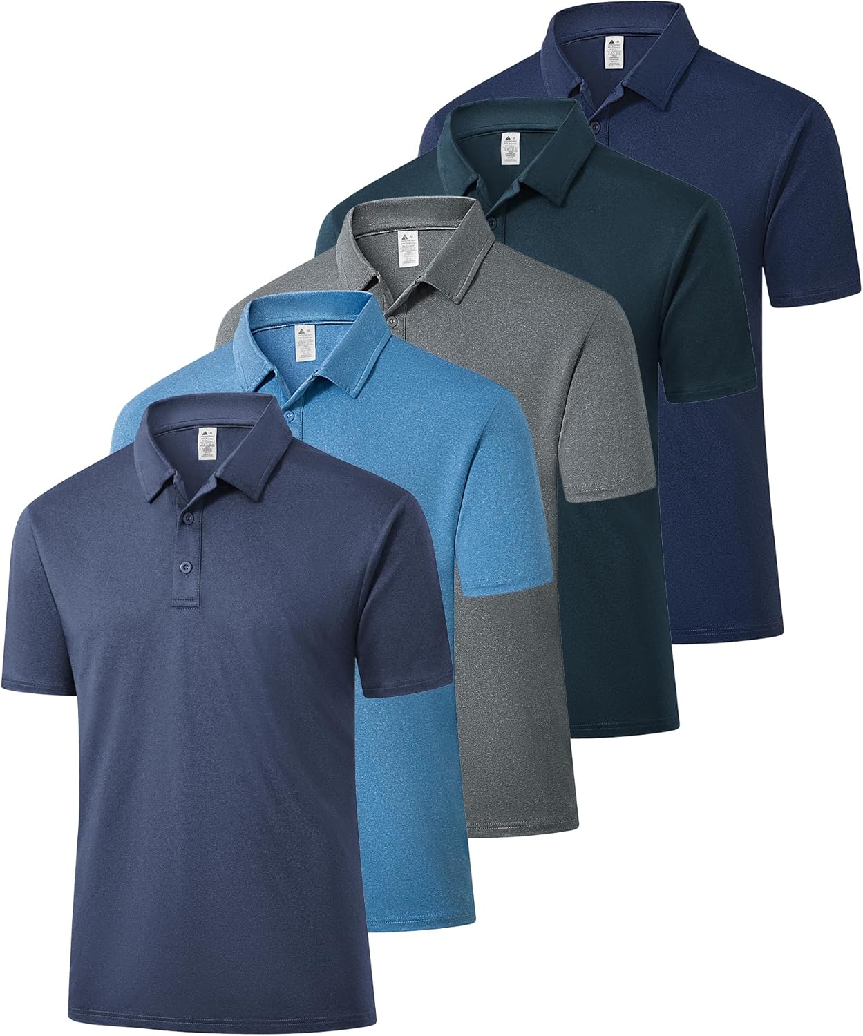 ZITY 5 Pack Mens Polo Shirts Short Sleeve Casual Performance Moisture Wicking Golf Shirt
