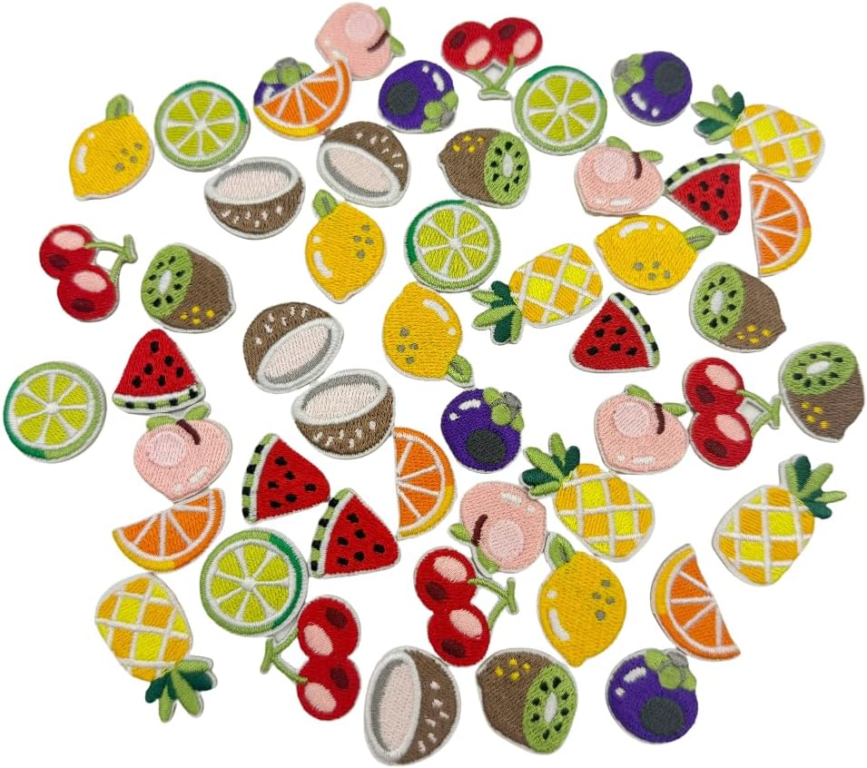 50 Pieces Mini Fruit Iron On Patches,Cute Iron On Patches,Embroidery Patche for Clothing Bag Scrapbook Hat Decorating Supplies DIY Craft Kits (Mini Fruit)
