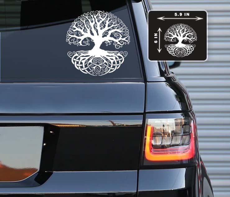 Knot Tree of Life Vinyl Decals Stickers for Cars, Vans, Trucks, and laptops (White 6x5.9)