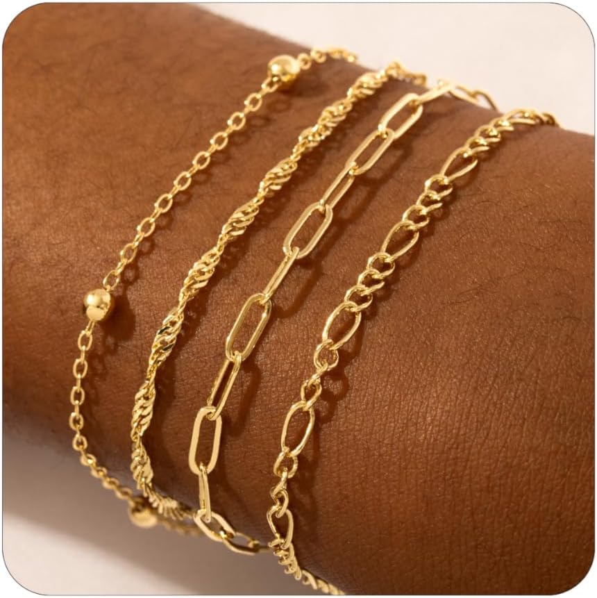 Gold Bracelets for Women, Dainty 14K Gold Plated Bracelet Stack for Women Trendy CZ Tennis Paperclip Cuban Chain Stackable Adjustable Waterproof Link Bracelet Jewelry Set Fashion Accessories Gifts