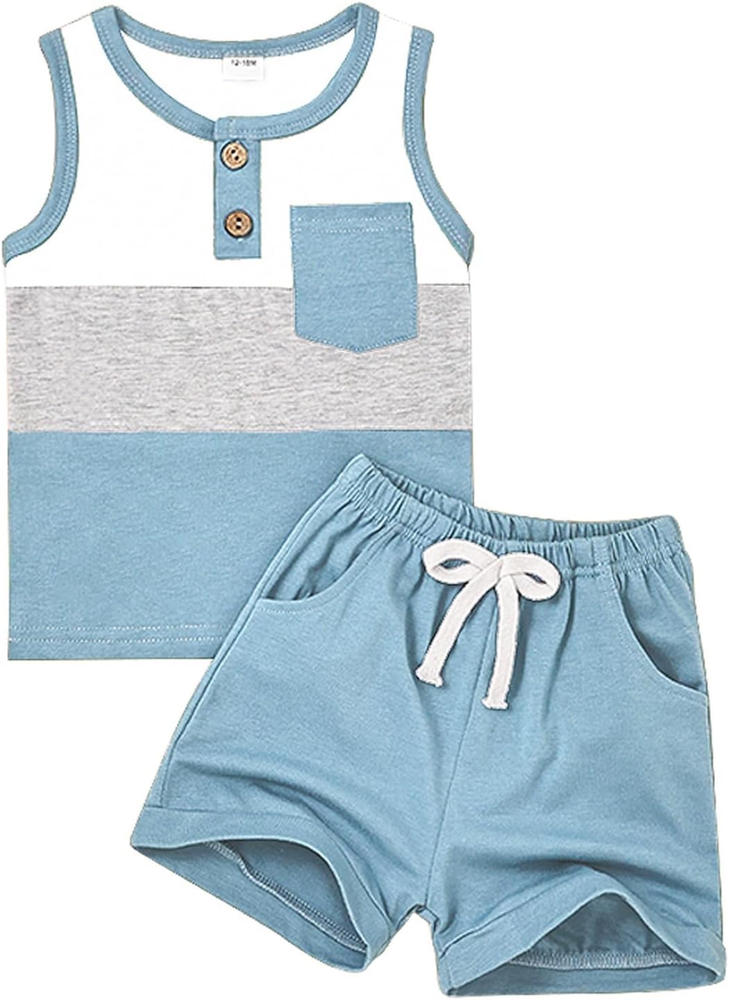 Boy Clothes Toddler Baby Boys Summer Outfits Sleeveless Patchwork T-Shirt Shorts Set 6 Months-4T