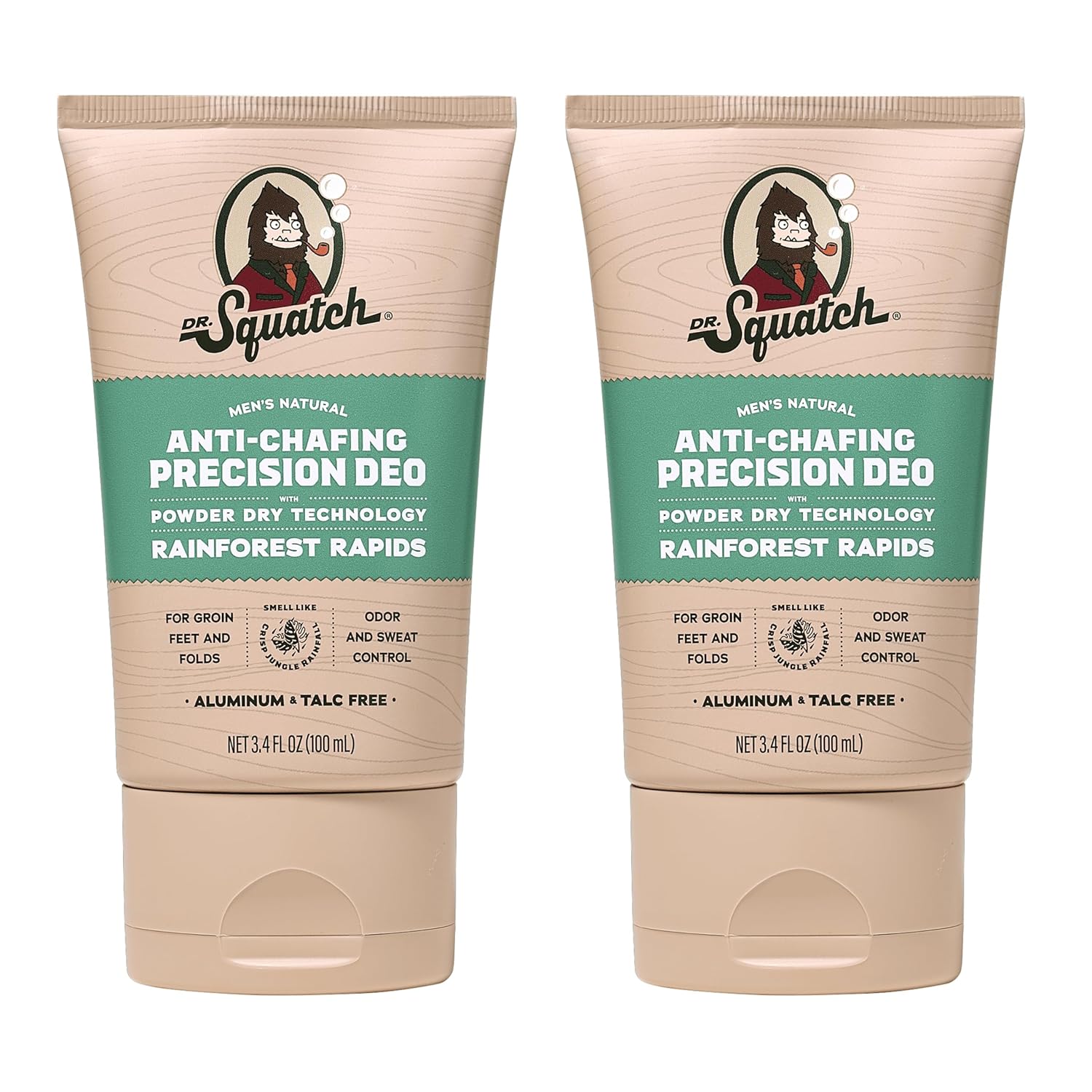 Dr. Squatch Whole Body Deodorant for Men - Odor + Sweat Control - Aluminum + Talc Free - Natural Ingredients - Dermatologist-Tested for All Skin Types - Rainforest Rapids (3.4 fl oz, 2-Pack)