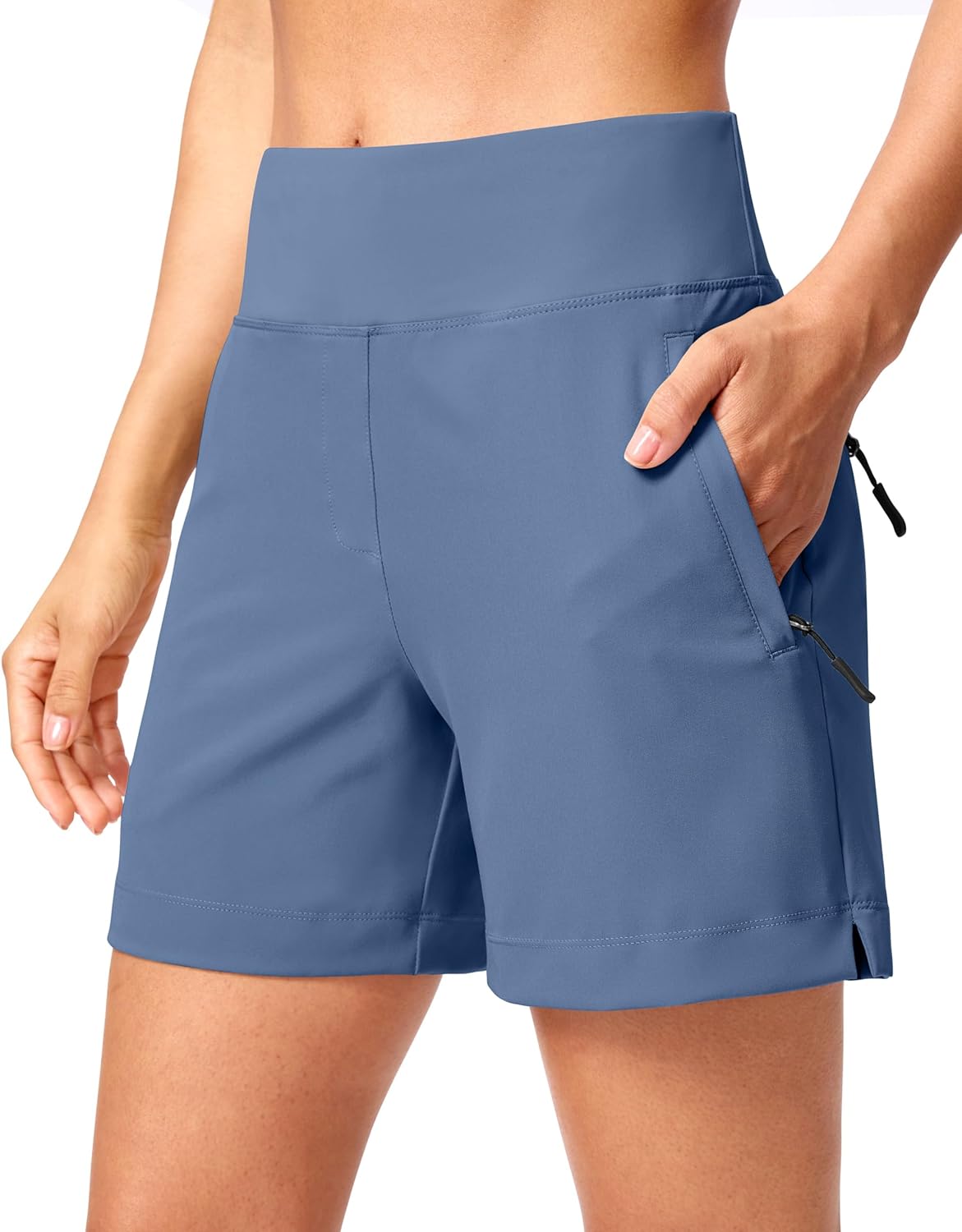 SANTINY Women's 5''/ 7''Hiking Shorts with 3 Zipper Pockets Lightweight Quick Dry Golf Shorts for Women Athletic Walking