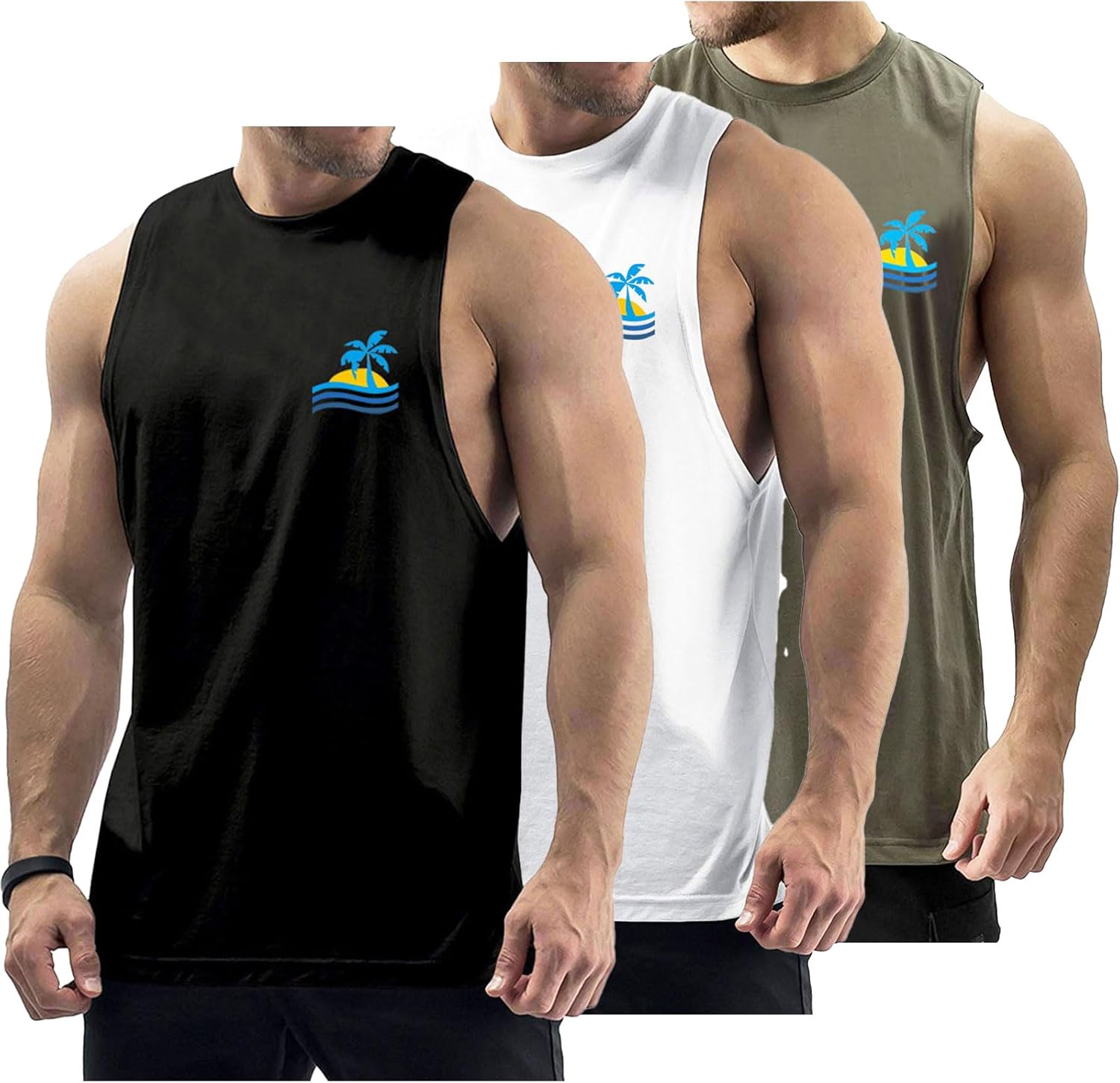 Mens Tank Tops Beach Summer Casual Sleeveless Shirts Graphic Cotton Tank Tops for Men Gym Workout