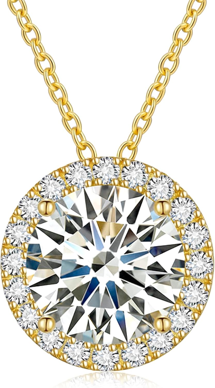 Moissanite Necklace Halo Gifts for Women, 0.5CT-4.0CT 18K White/Yellow Gold Vermeil 925 Sterling Silver Valentines Presentfor Her, Lab Created Dimaond Pendant with GRA Certificate of Authenticity