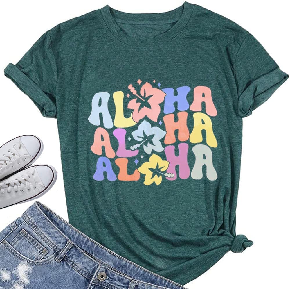 Women Hawaiian Shirt Summer Vacation Tee Floral Tropic Graphic Top Beach Cruise Party Tshirt Athletic Outfit
