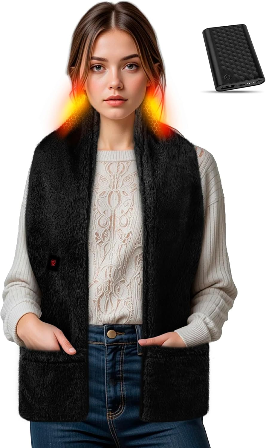 Genovega Heated Fur Scarf for Women Unique Valentine Gifts with 6000mAh Portable Battery Intelligent Rechargeable