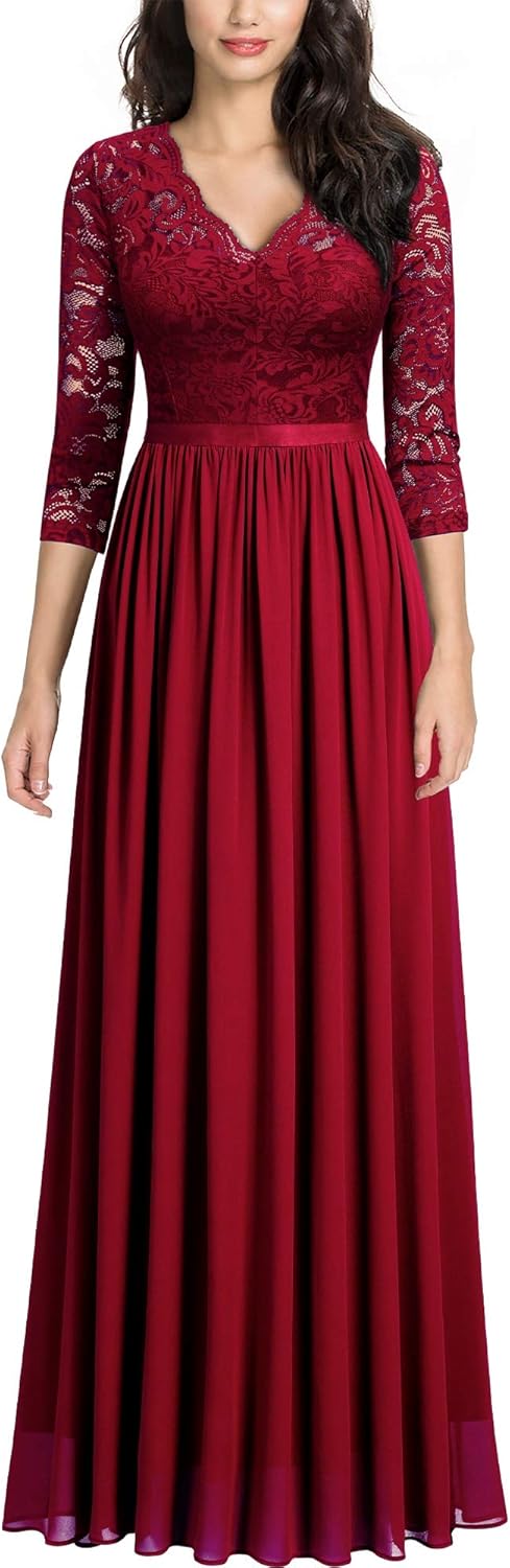 MISSMAY Women's Vintage Floral Lace V Neck Evening Bridesmaid Formal Long Dress