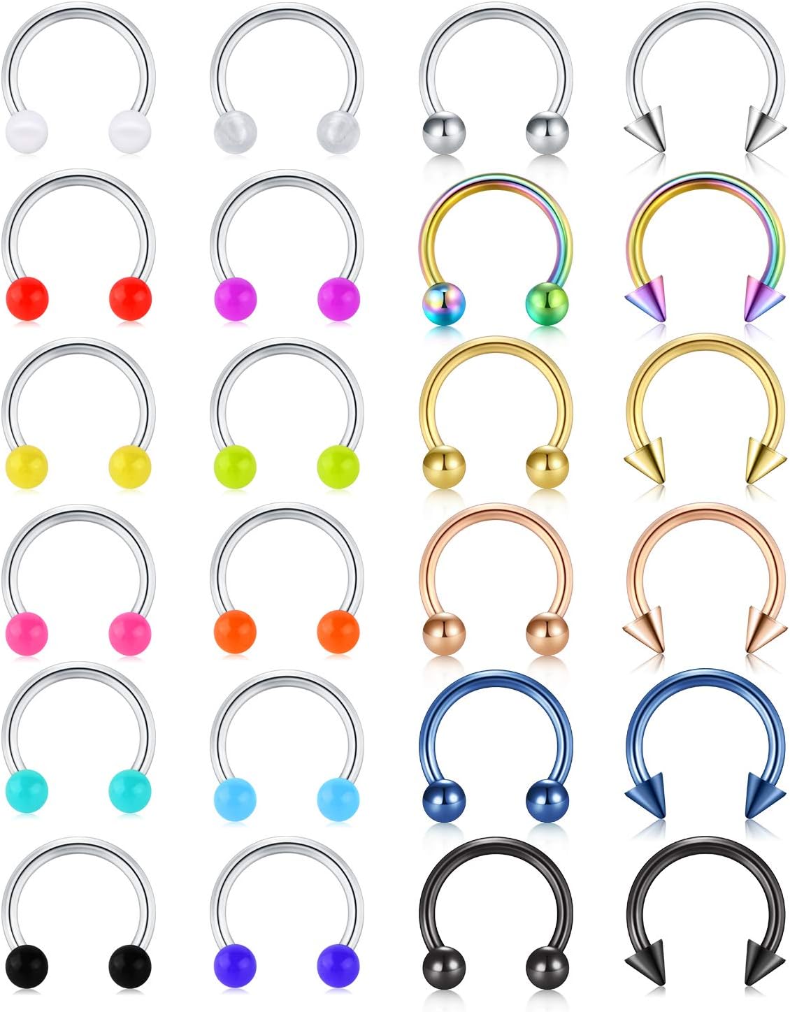 Mayhoop 20G 24Pcs Stainless Steel Horseshoe Nose Septum Rings Piercing Jewelry Cartilage Helix Tragus Earring Hoop Lip Horseshoe Piercing Retainer for Women Men 8mm 10mm