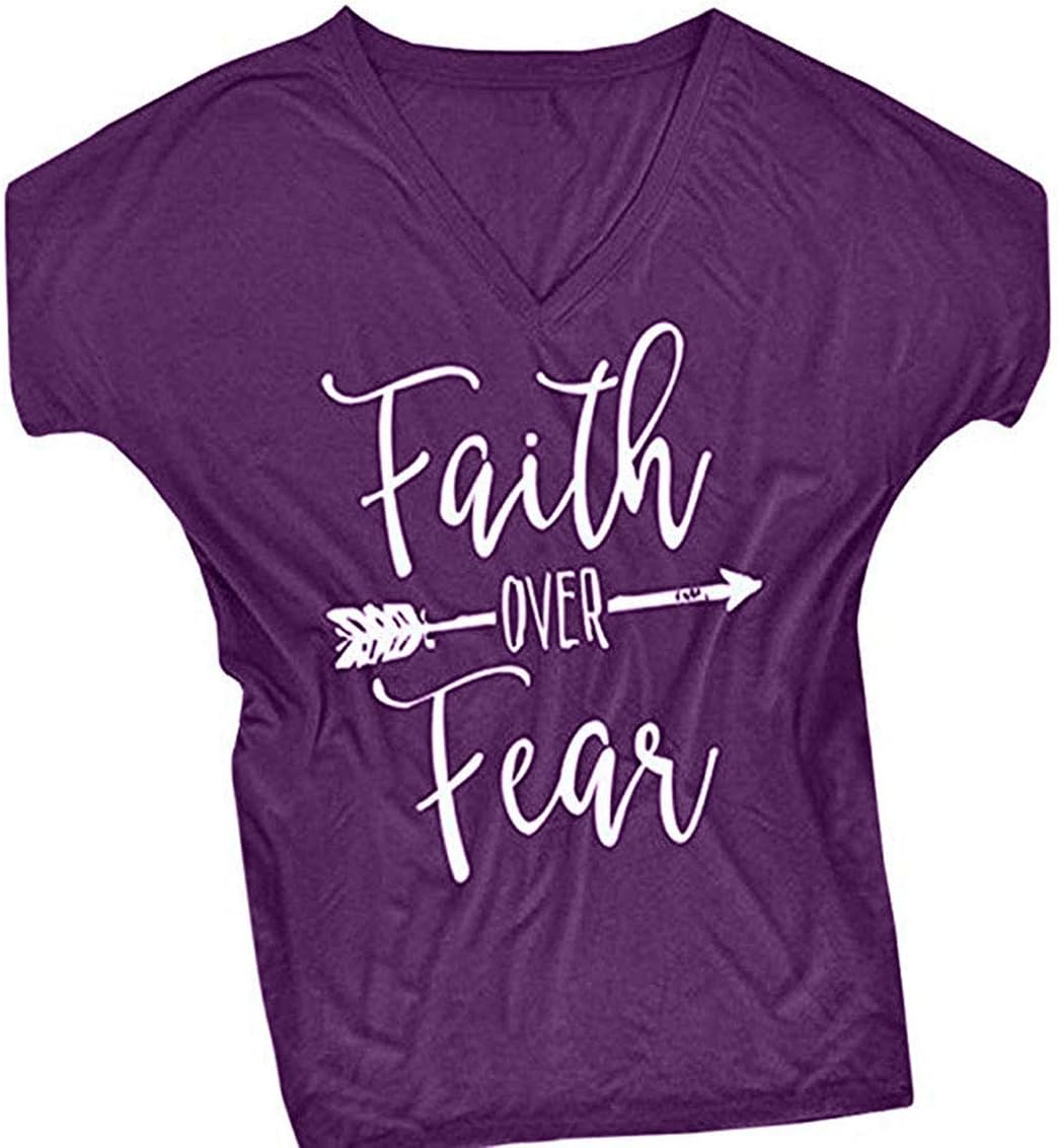 DANVOUY Women's V-Neck Summer Casual Letters Printed T-Shirt Short Sleeves Graphic Tops