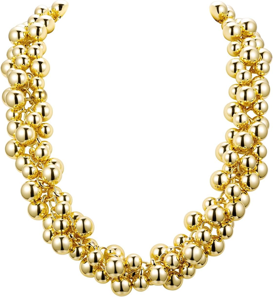 Statement Necklace for Women Ball Beaded Design Chunky Gold Necklace Trendy Lightweight Necklace for Party Gift