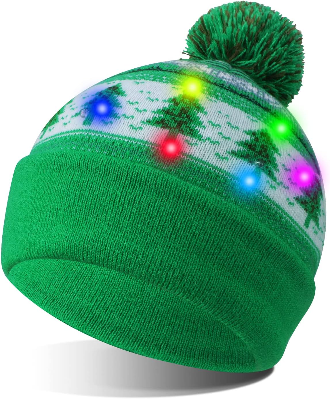 TAGVO LED Light Up Hat Beanie Knit Cap, Colorful LED Xmas Christmas Beanie