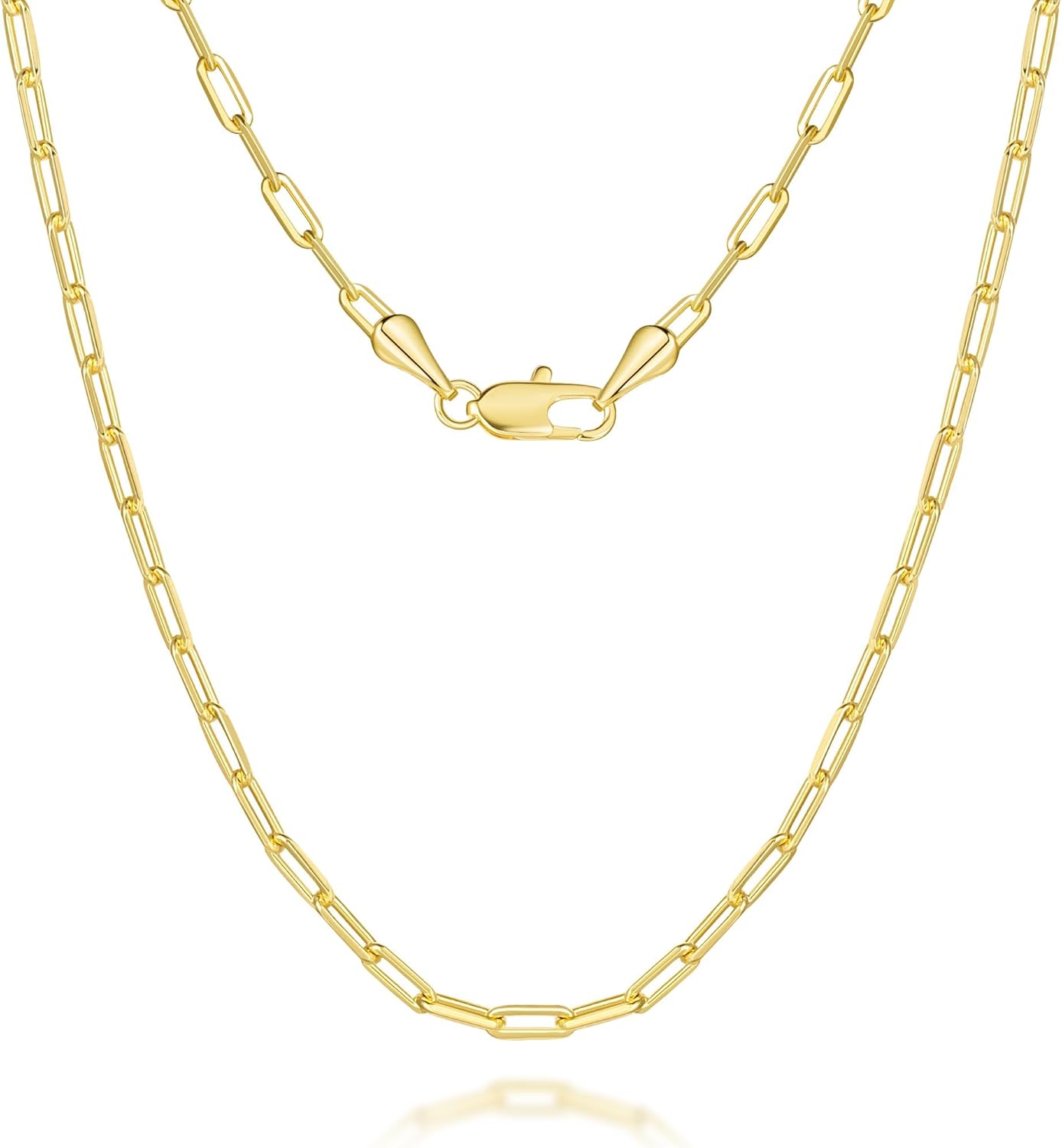 Paperclip Chain Necklace 14K Gold Necklace for Women 3mm Gold Chains Necklaces for Women & Men Non Tarnish Chain 16-26 Inches
