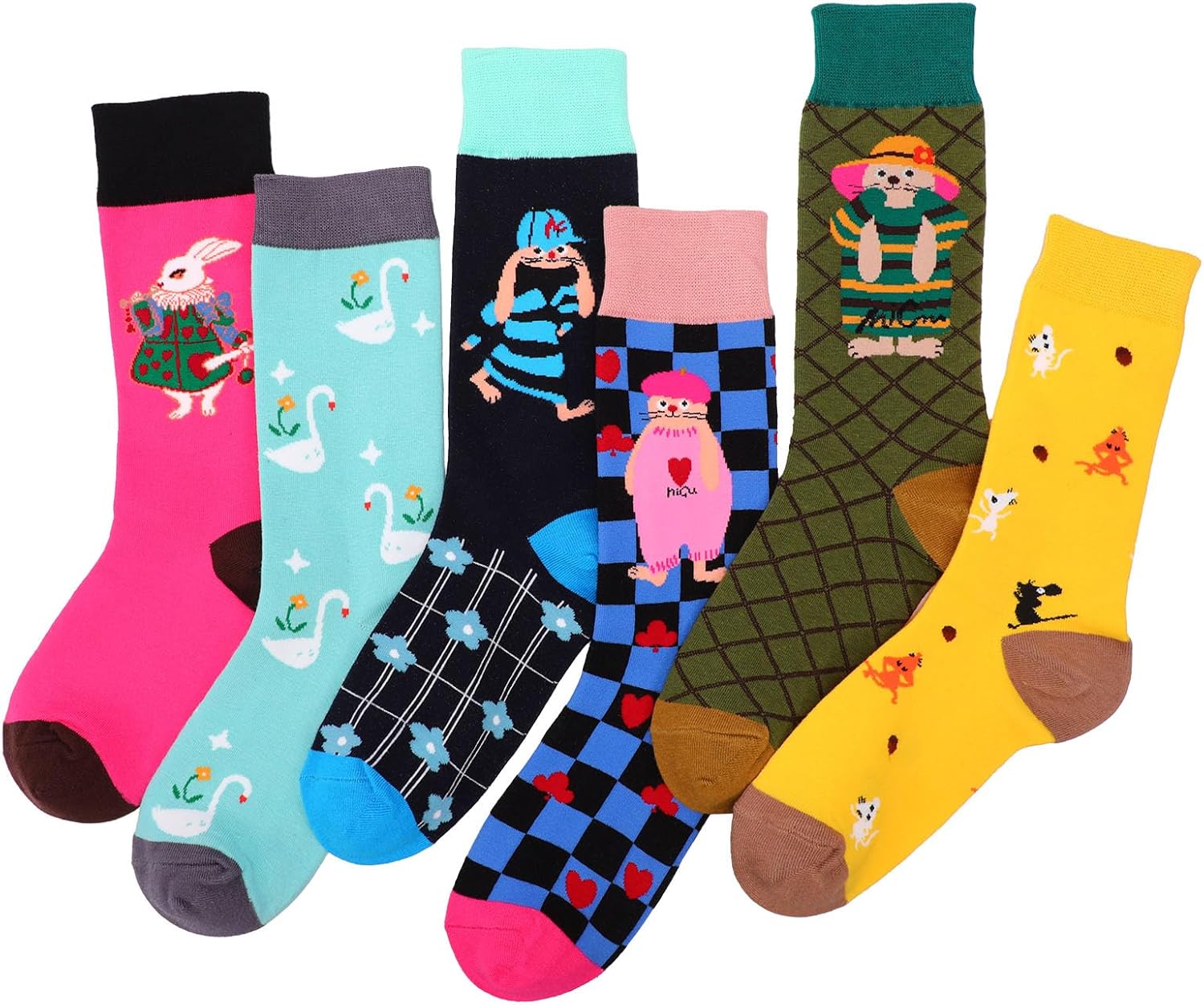 6 Pairs Women's Colorful Novelty Crew Socks Fun Pattern Socks Size 5-7.5