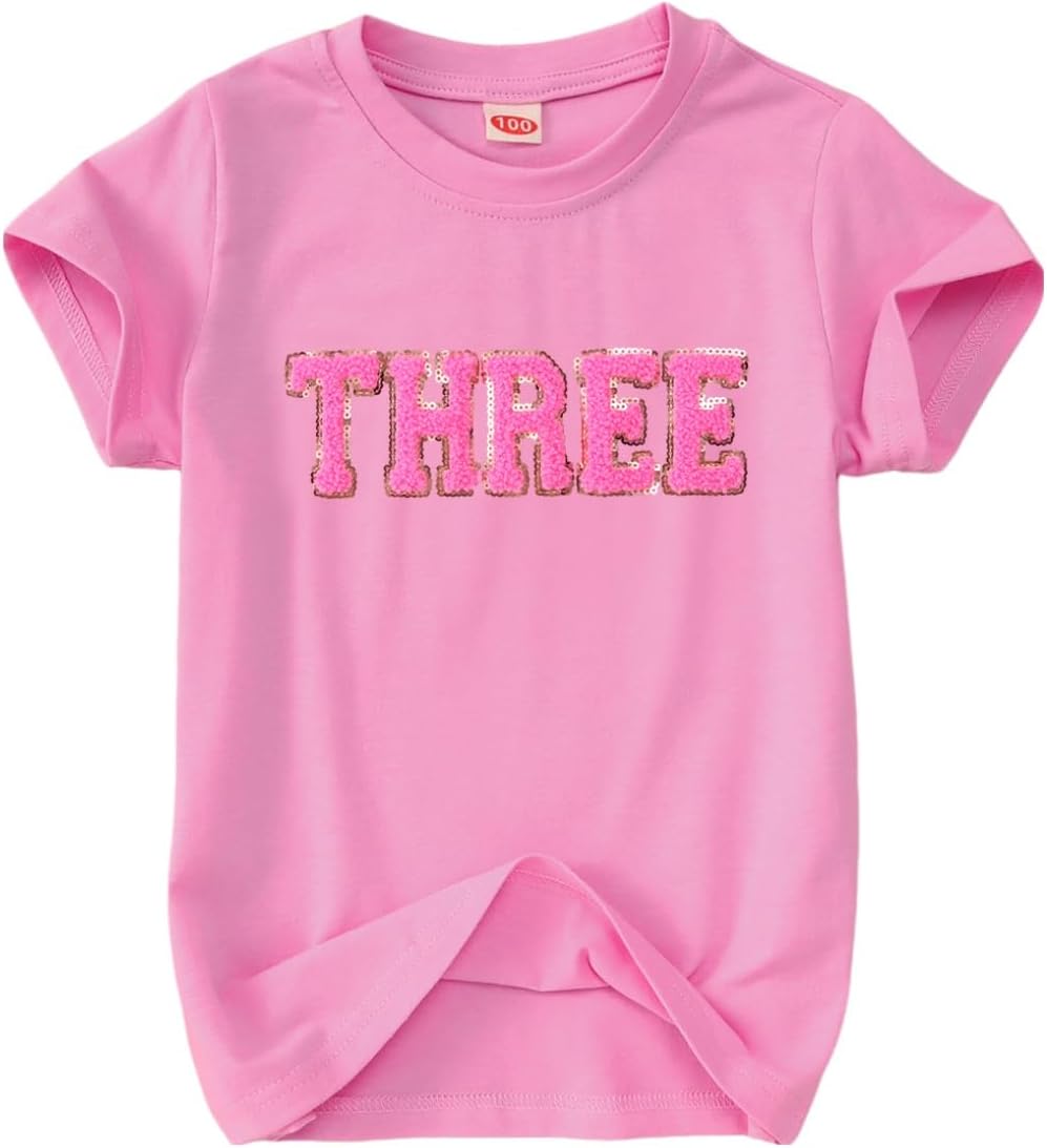 Ritatte Toddler Baby Girl Birthday Shirt Sequin Glitter Numbers Embroidery T-Shirt Outfit Chenille Patch Gift Tee Tops 1-4T