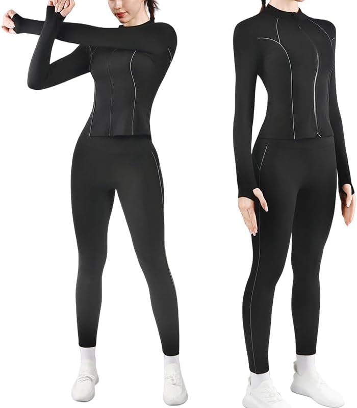 Workout Sets for Women 2 Piece Seamless Long Sleeve Yoga Outfits Active Leggings All Zippy Jacket Gym Set